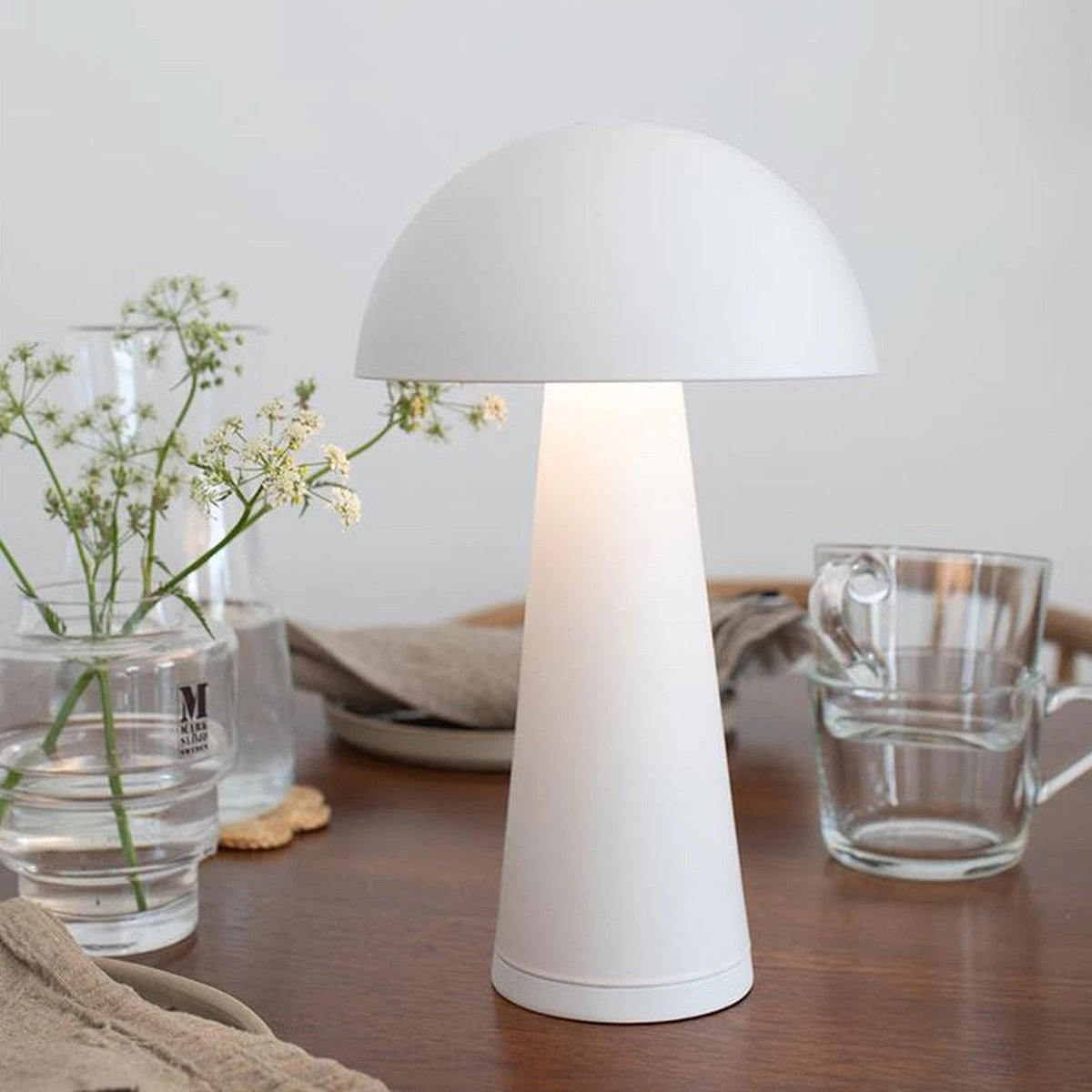 Fungi bordlampe fra Markslöjd. Understell og skjerm i matt hvit metall.