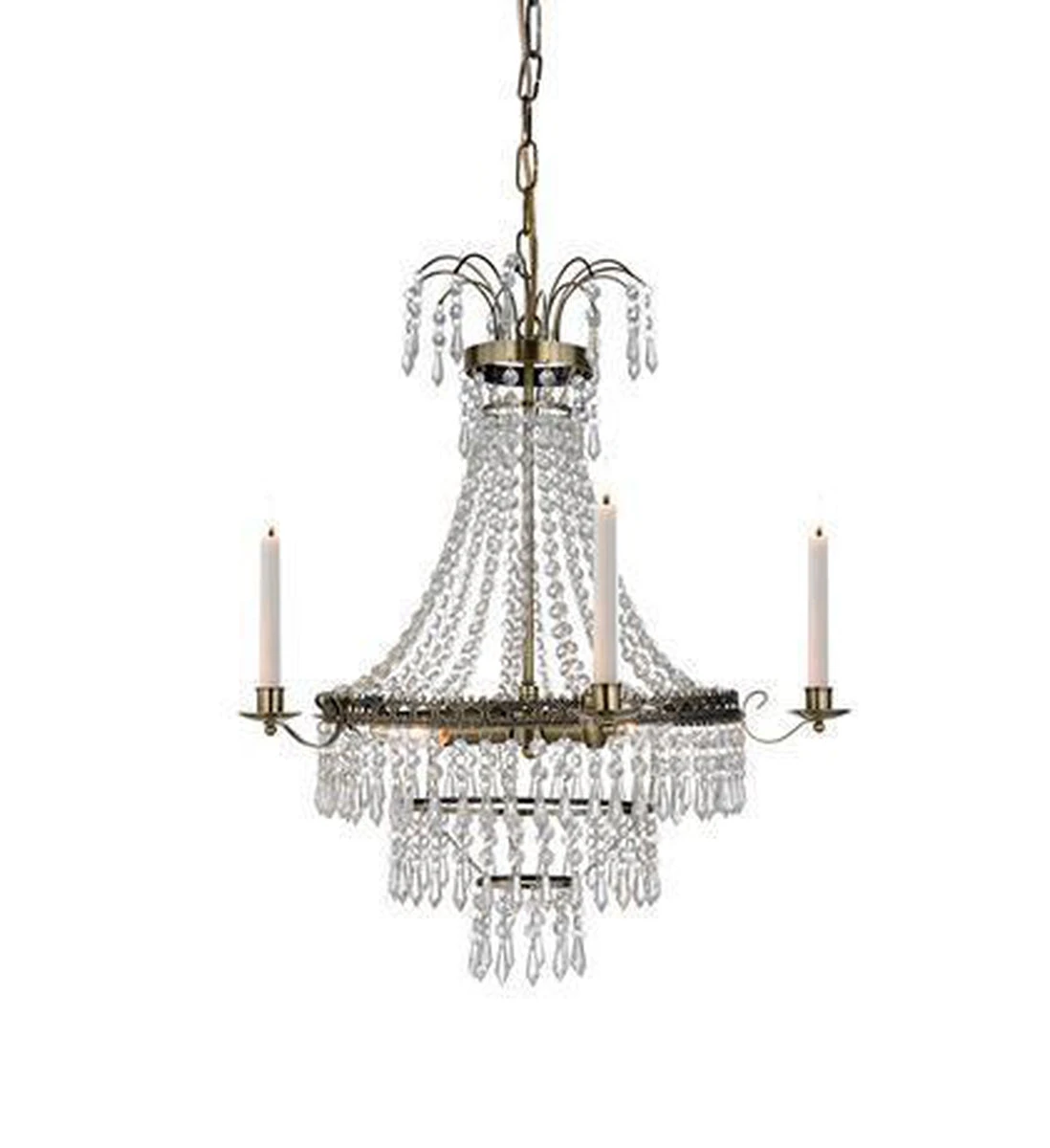 Krystall lysekrone Marielund fra Marksløjd. Stamme i metall. Maskinskårne prismer. 1,2m kjetting med takkopp for krokoppheng. Jordet tilkobling. Små pæreholdere (E14). Max 40W glødepære eller tilsvarende styrke i halogen eller LED.