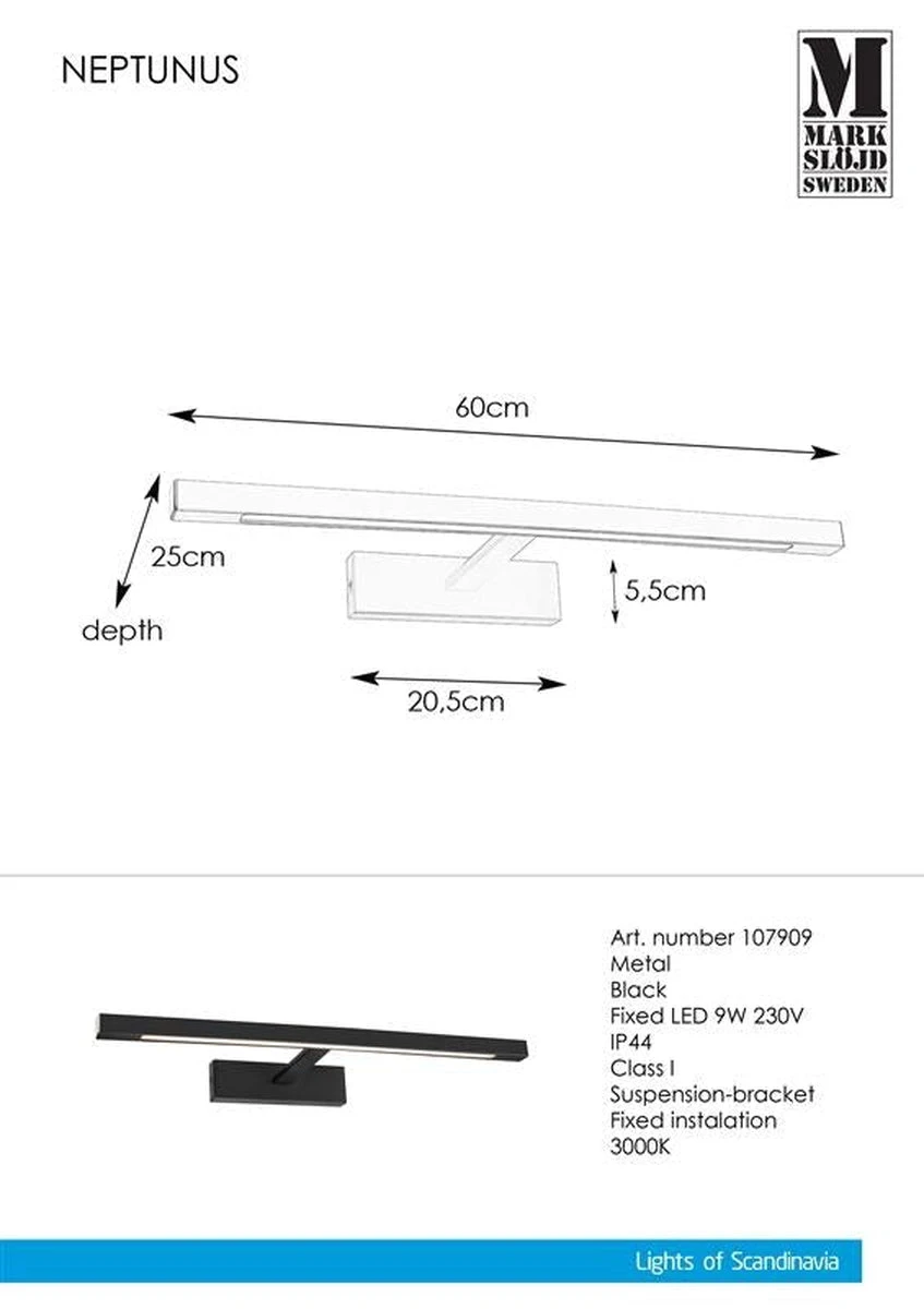 Sort vegglampe i metall som passer godt over baderomsspeil.