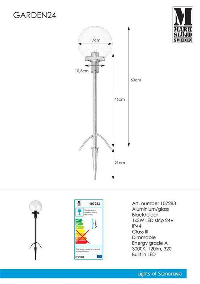 Garden pullert 3w fra Markslöjd. IP44 godkjent for utendørs bruk. 3W LED. Leveres med spyd for bakkeplassering. Transformer kjøpt separat.