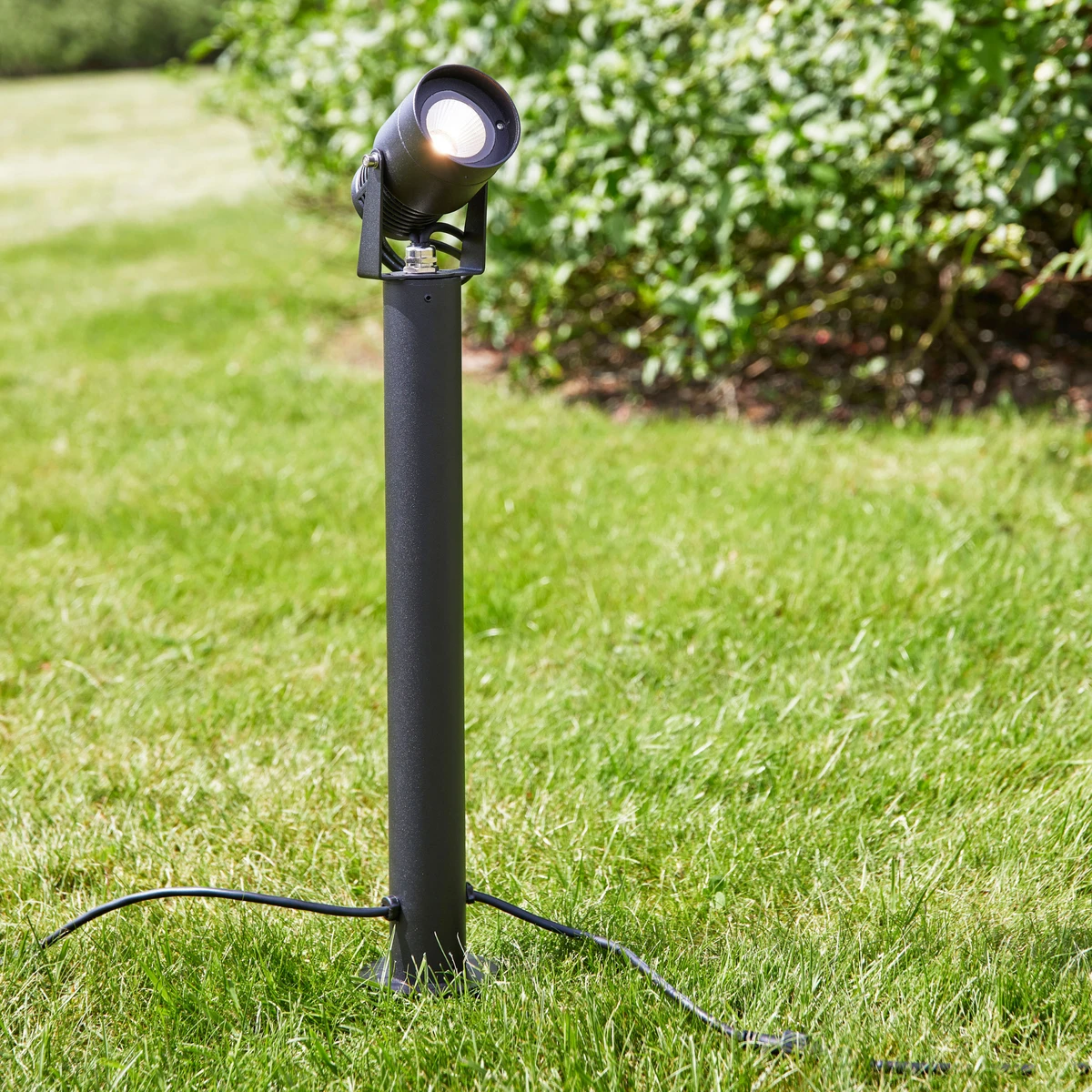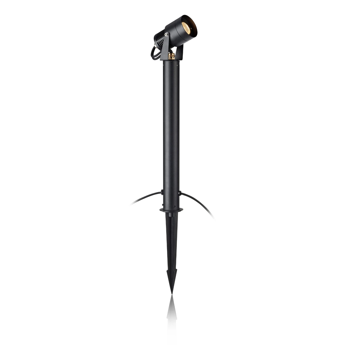 Garden spot 6w fra Markslöjd. IP44 godkjent for utendørs bruk. 6W LED. Leveres med spyd for bakkeplassering og braketter for montering på takrenner. Trafo kjøpes separat.
