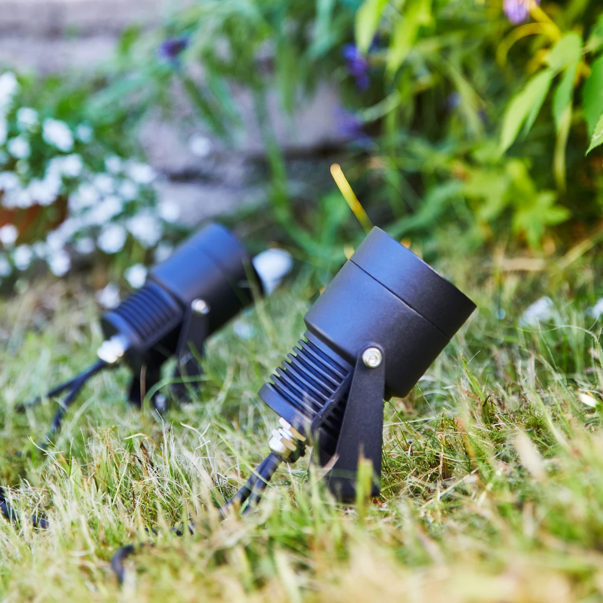Garden spot 6w fra Markslöjd. IP44 godkjent for utendørs bruk. 6W LED. Leveres med spyd for bakkeplassering og braketter for montering på takrenner. Trafo kjøpes separat.