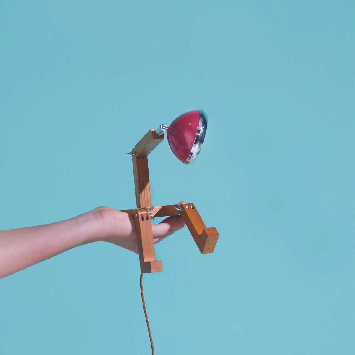 Mr. Wattson er håndlaget. Lampen er inspirert av actionfigurer, farger og former av vintage bildeler fra 1930-tallet.