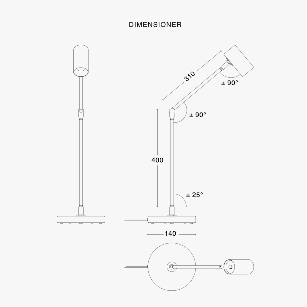 Bordlampen gir et optimalt arbeidslys ved for eksempel skrivebordet. Lampen har justerbar ramme og dreibar og vippbar skjerm. Leselyset er modernisert og erstattet med LED i stedet for halogen.