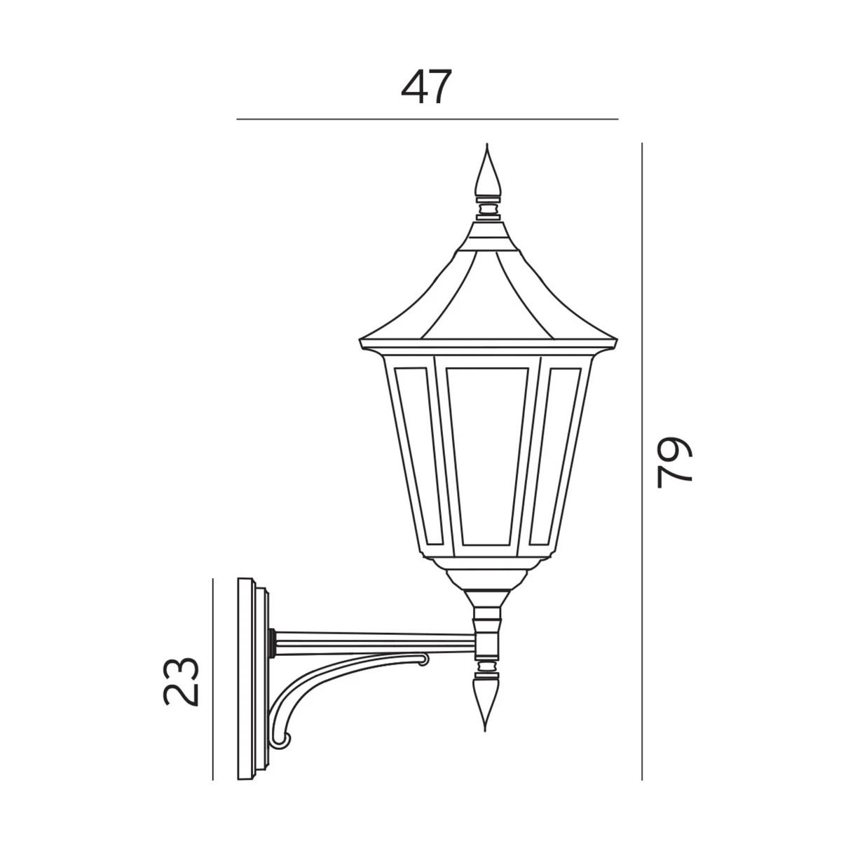Vegglampe i klassisk design med glass av slagfast klar polykarbonat. Utelampen er vendt oppover. Finnes i fargene sort og hvit.