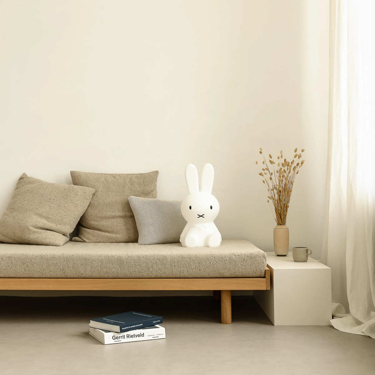 Nydelige og rolige, Miffy-lampene fungerer som nattlys for både barn og voksne. Denne sjarmerende lette gjenstanden utstråler en myk, varm glød – ideell for historiefortelling med de unge ved sengetid, eller til og med som dekor for ethvert moderne interiør.
