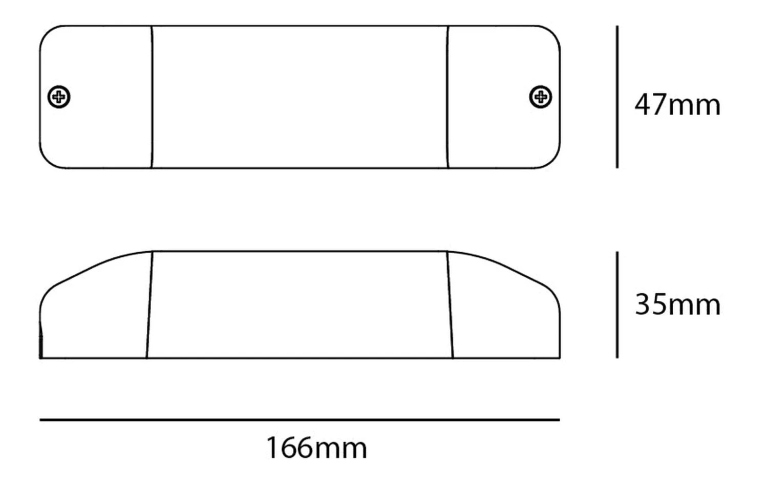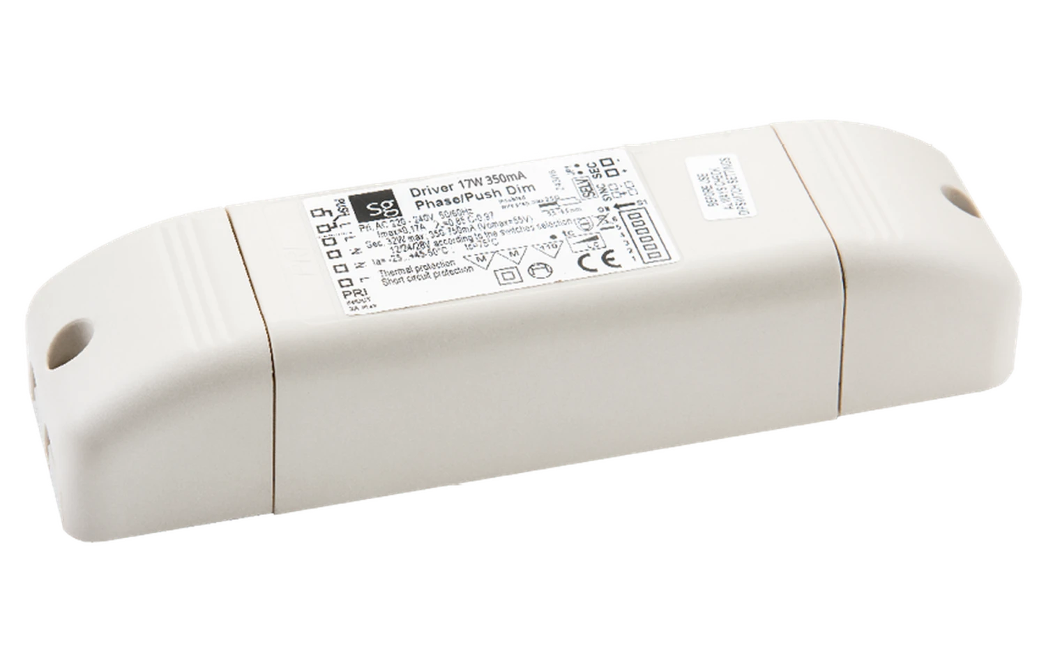 17W driver @ 350mA. Driveren er dimbar med faseavsnitt og impulsbryter. Max 17W belastning.