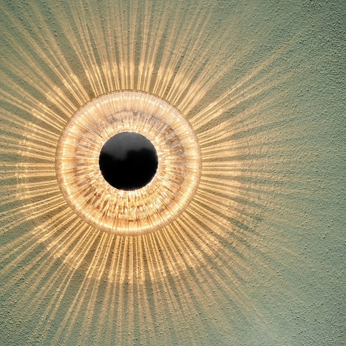 Den ikoniske New Wave Optic Vegglampen er nå også tilgjengelig i en utendørsversjon. Det munnblåste bølgete glasset skaper en magisk belysningsopplevelse på enhver utendørs vegg.