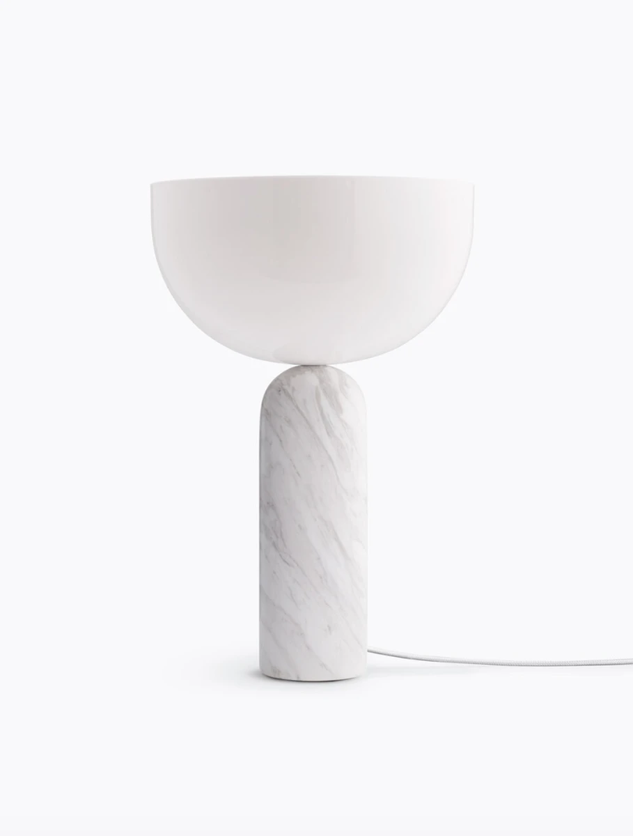 - Materiale: Skjerm i hvit akryl, base i marmor og ledning i PVC