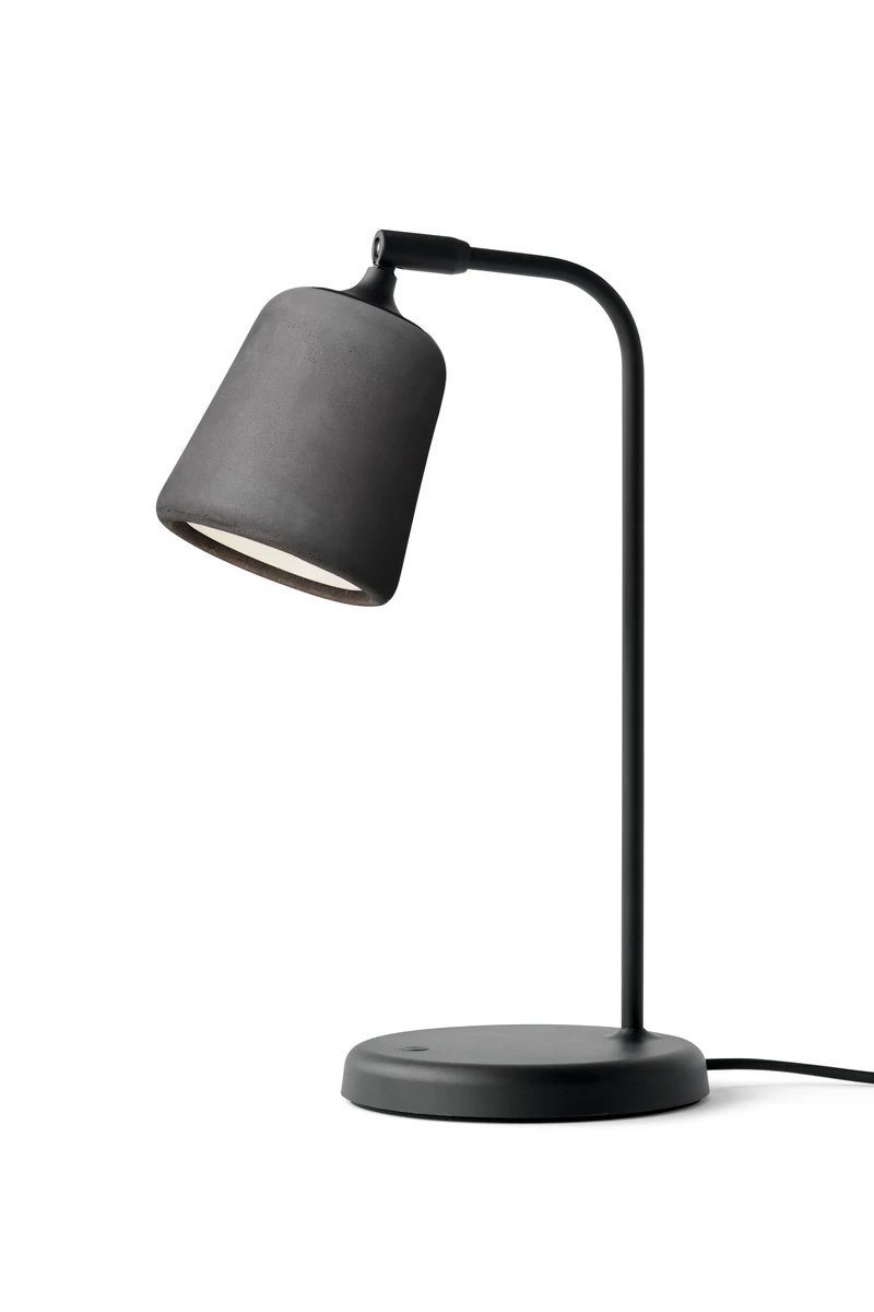 Material-serien fremhever kraften til enkelhet i form og lar deg bringe skjønnheten til naturlige materialer inn i interiøret. Bordlampen har et dreibart hode for ekstra funksjon, og en elegant svart ramme som plasserer ditt valgte materiale foran og i midten. Perfekt for hjemmekontoret, arbeidsrommet eller som leselys i stuen, hvor de taktile teksturene til materialene vil gi varme og dybde til interiøret.