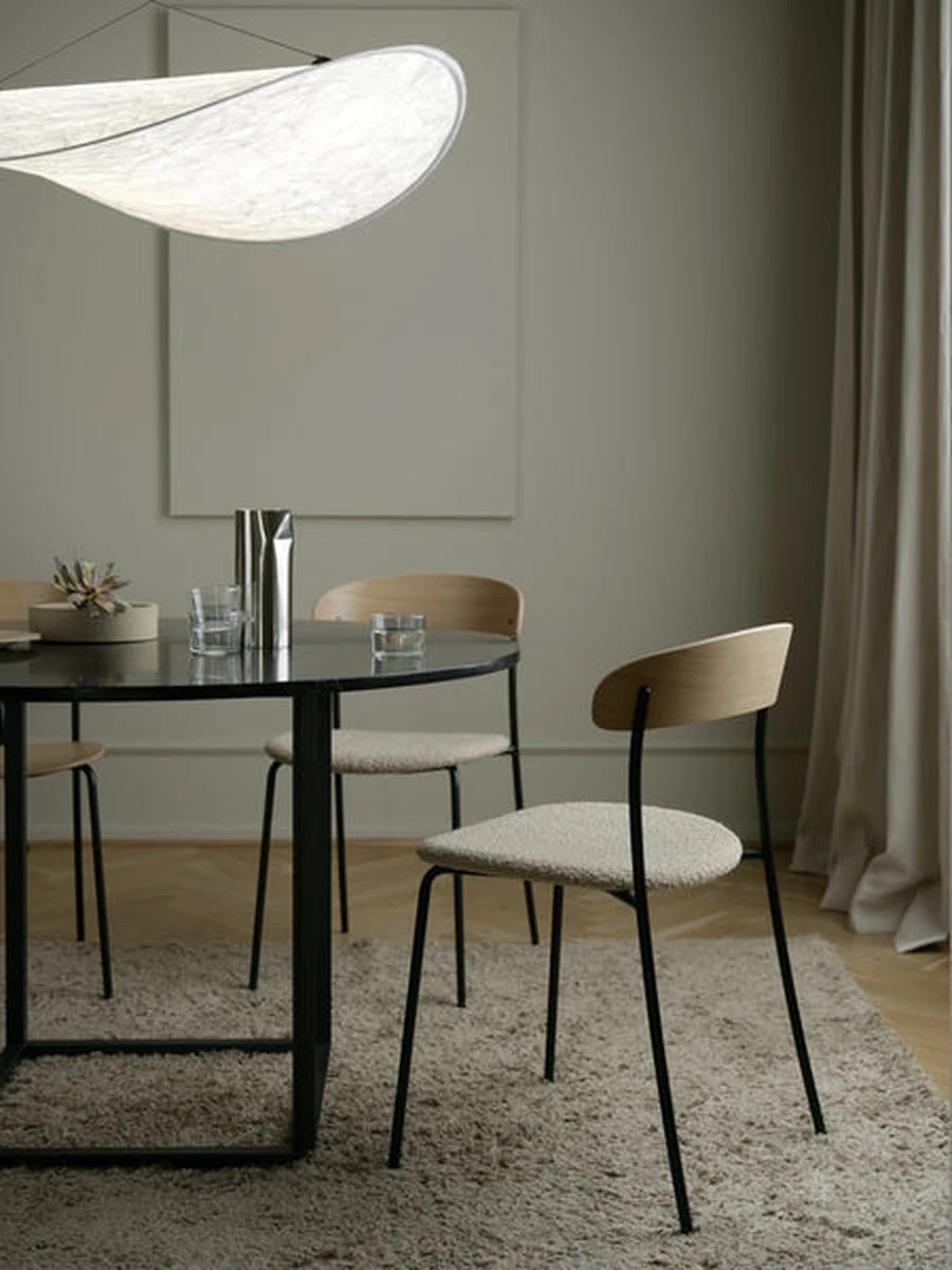 - Materiale: Skjerm i Tyvek-membran (100% resirkulert) strammet opp med karbonstenger, ledning i svart PVC og dimbar LED-lyskilde.