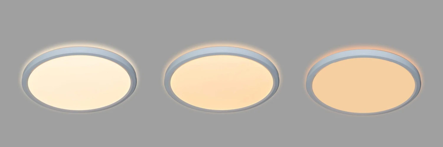Nika er en tynn taklampe med 3-step dim som betyr at du kan dimme lampen med vanlig bryter for 3 nivåer.