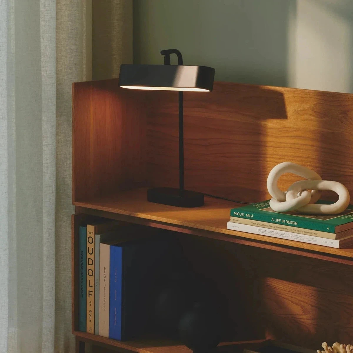 Merlin er en moderne tolkning av den tidløse biblioteklampen. Designet er minimalistisk og slankt, og skaper et veldig lett og elegant uttrykk. Den brede skjermen kan vippes i den retningen du foretrekker.