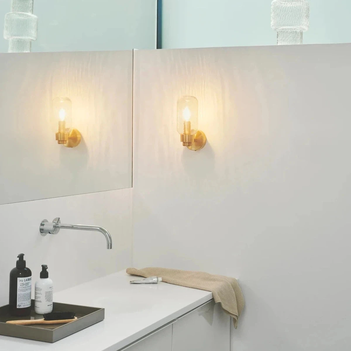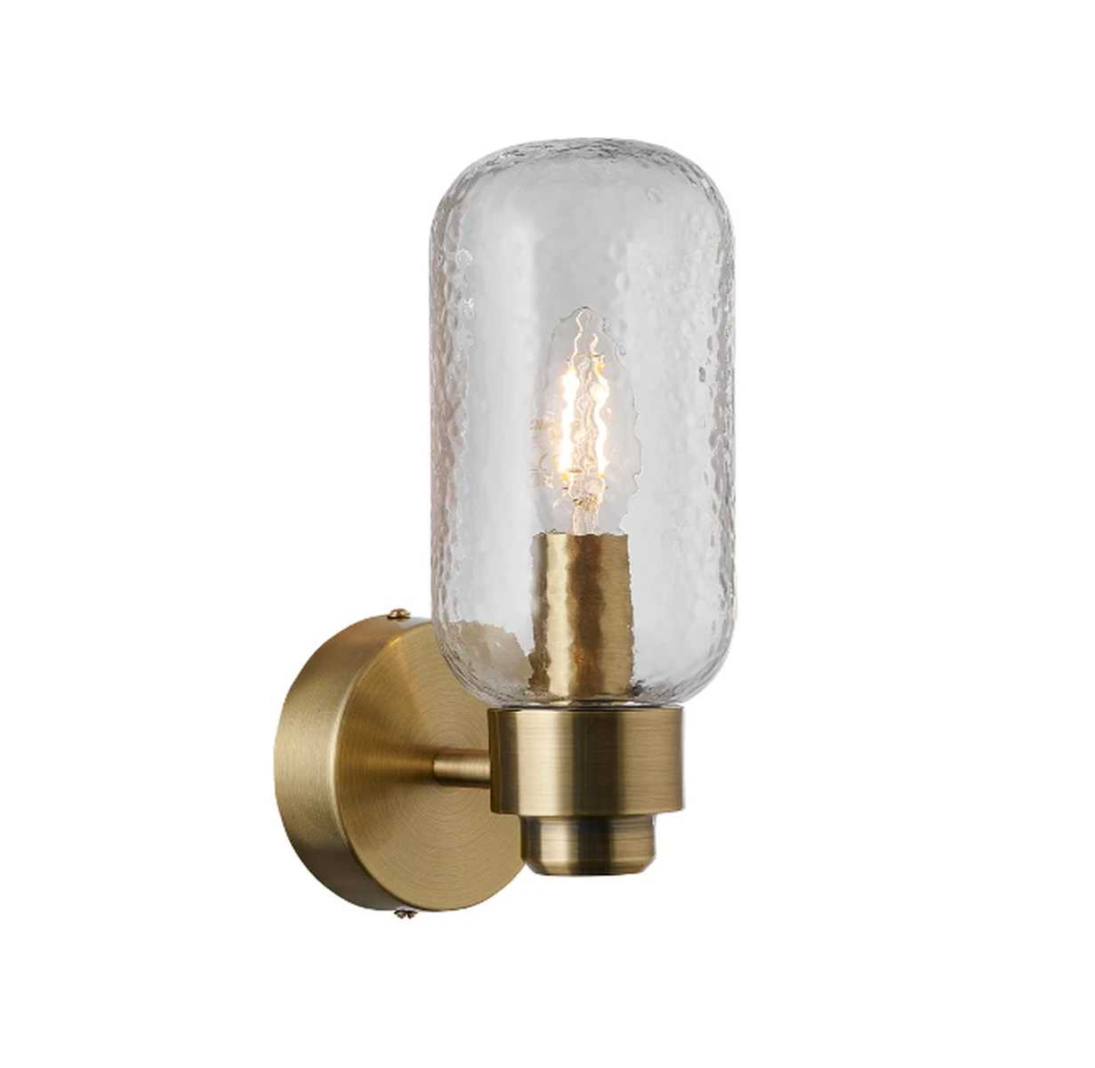 Tutan har et elegant og avrundet design med tydelige Art Deco-referanser. Det mønstrede glasset sikrer et behagelig lys som er perfekt ved siden av baderomsspeilet. Sett inn en dekorativ pære og skap ditt eget designuttrykk.