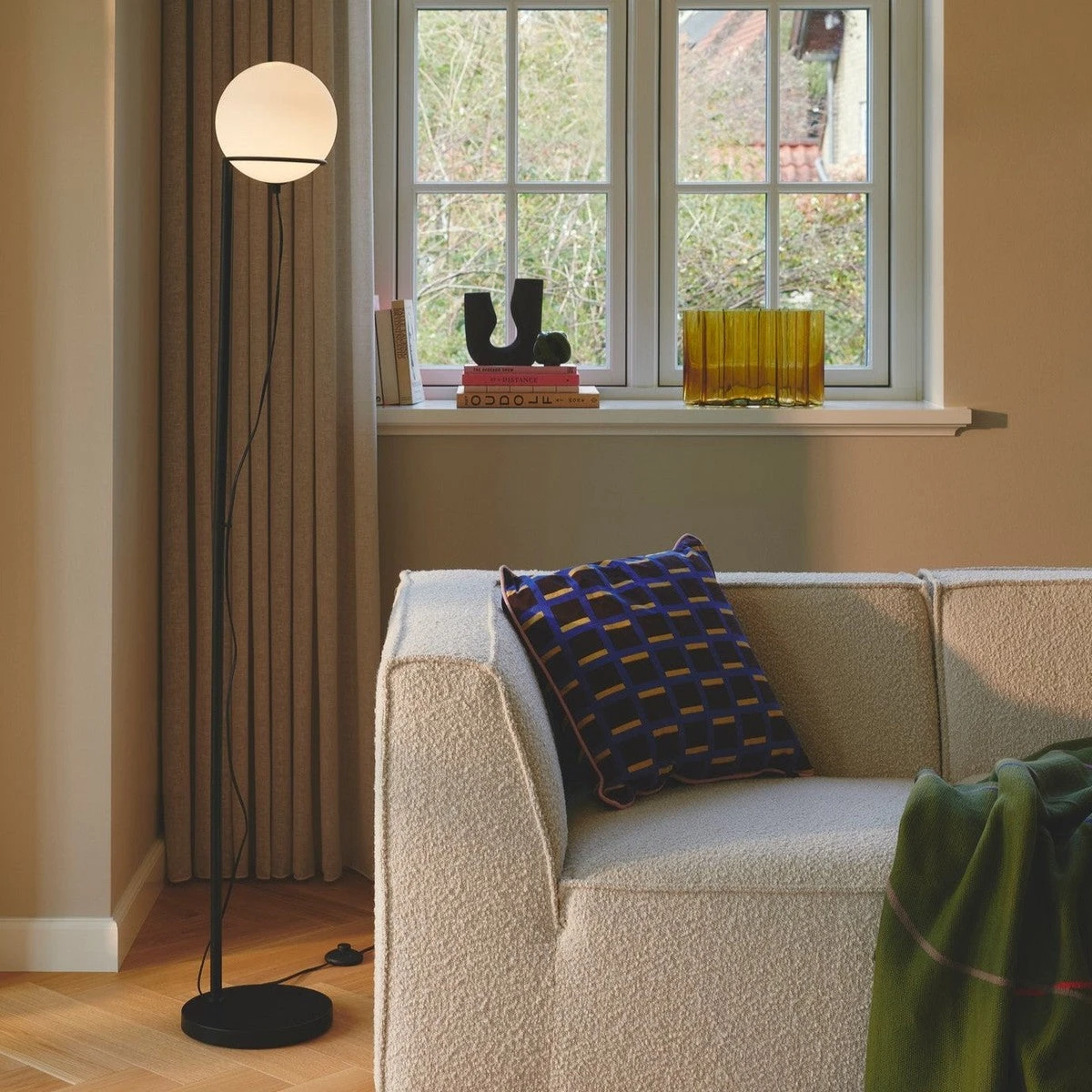 Den moderne Wilson-serien har en elegant svart metallramme som den runde glasskjermen hviler på. Wilson skaper en hyggelig stemning uansett hvor den plasseres og avgir et mykt og mildt lys som sprer seg i hele rommet. Glasskjermen kan justeres sik at den passer til dine behov.