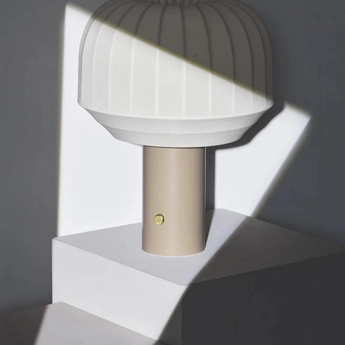 Denne bordlampen passer perfekt på et sidebord, en vegghylle eller et skap. Den tekstiltrukne skjermen – en sjeldenhet blant bordlamper – gjør lampen til et dekorativt innslag i rommet. I tillegg har den en jevn dimmefunksjon som lar deg enkelt justere lysstyrken etter stemning og behov.