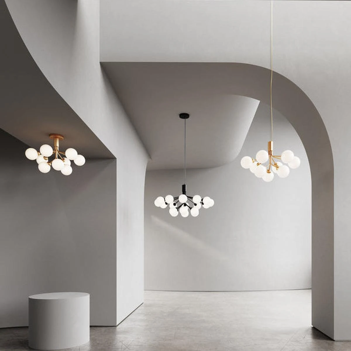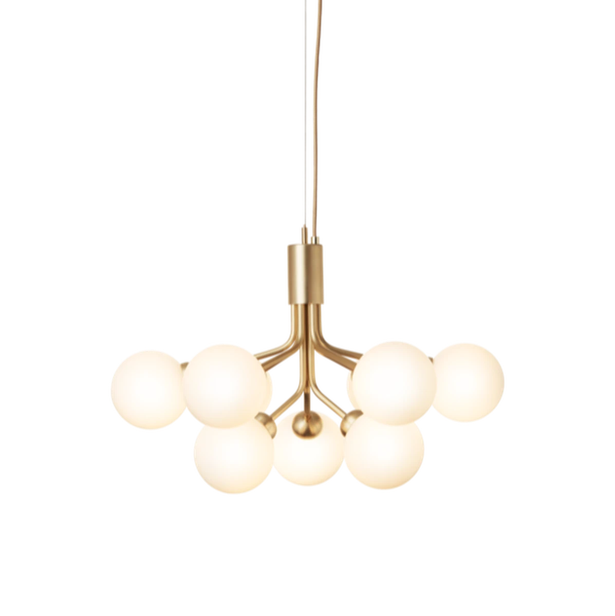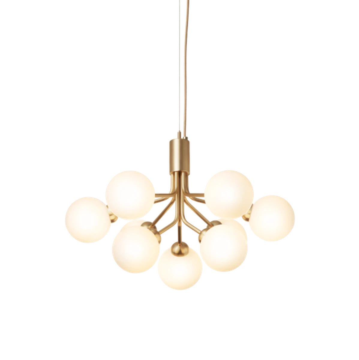 Armene på Apiales lysekrone minner om blomsterstilker som sprer et diffust og vakkert lys. Apiales 9, med sine 60 cm i diameter, passer over spisebordet, på soverommet eller i gangen.