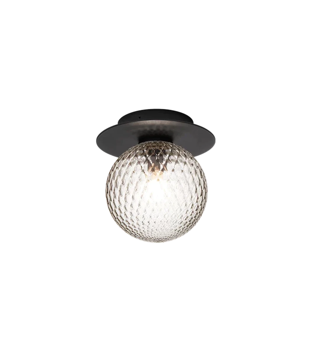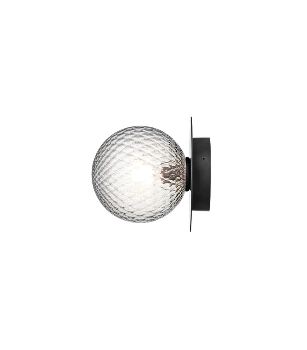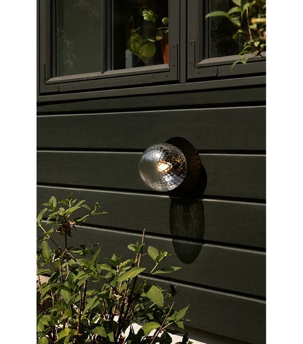 Liila 1 Outdoor er en vegg- og taklampe som skal monteres på fasadene til hjemmet ditt, enten ved inngangsdøren eller i taket på verandaen. Liila 1 Outdoor består av en rund metallplate i sort pulverlakk og en munnblåst glasskule i klart glass. Det organiske designet og kontrastmaterialene skaper en klassisk og tidløs utendørsbelysning.