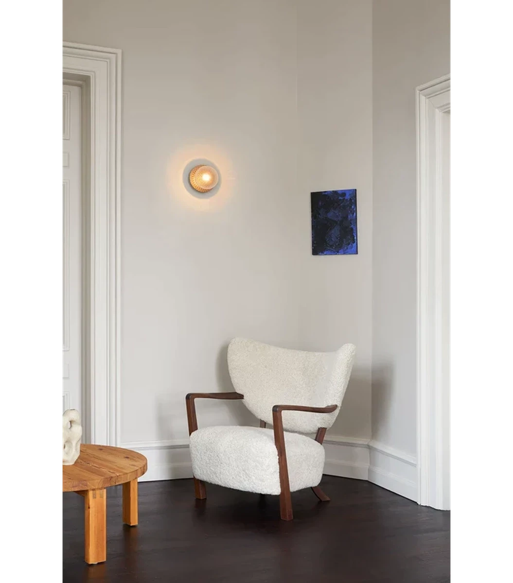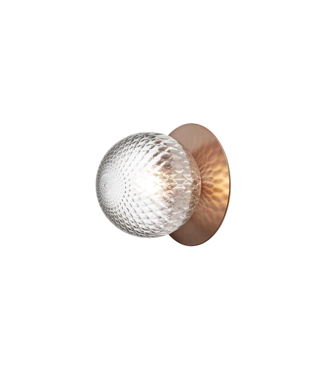 Liila 1 er en enkel lampe som ser vakker ut på veggen eller i taket. Den er enkel i sin form, og består av en tynn rund metallplate og en unik, munnblåst glasskuppel. Liila 1 passer til mindre rom, bad og til entréen.