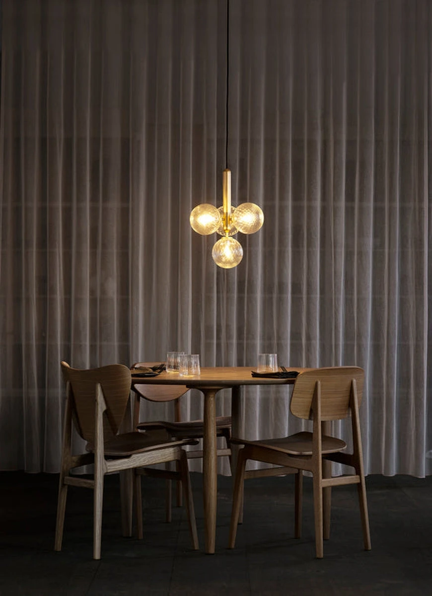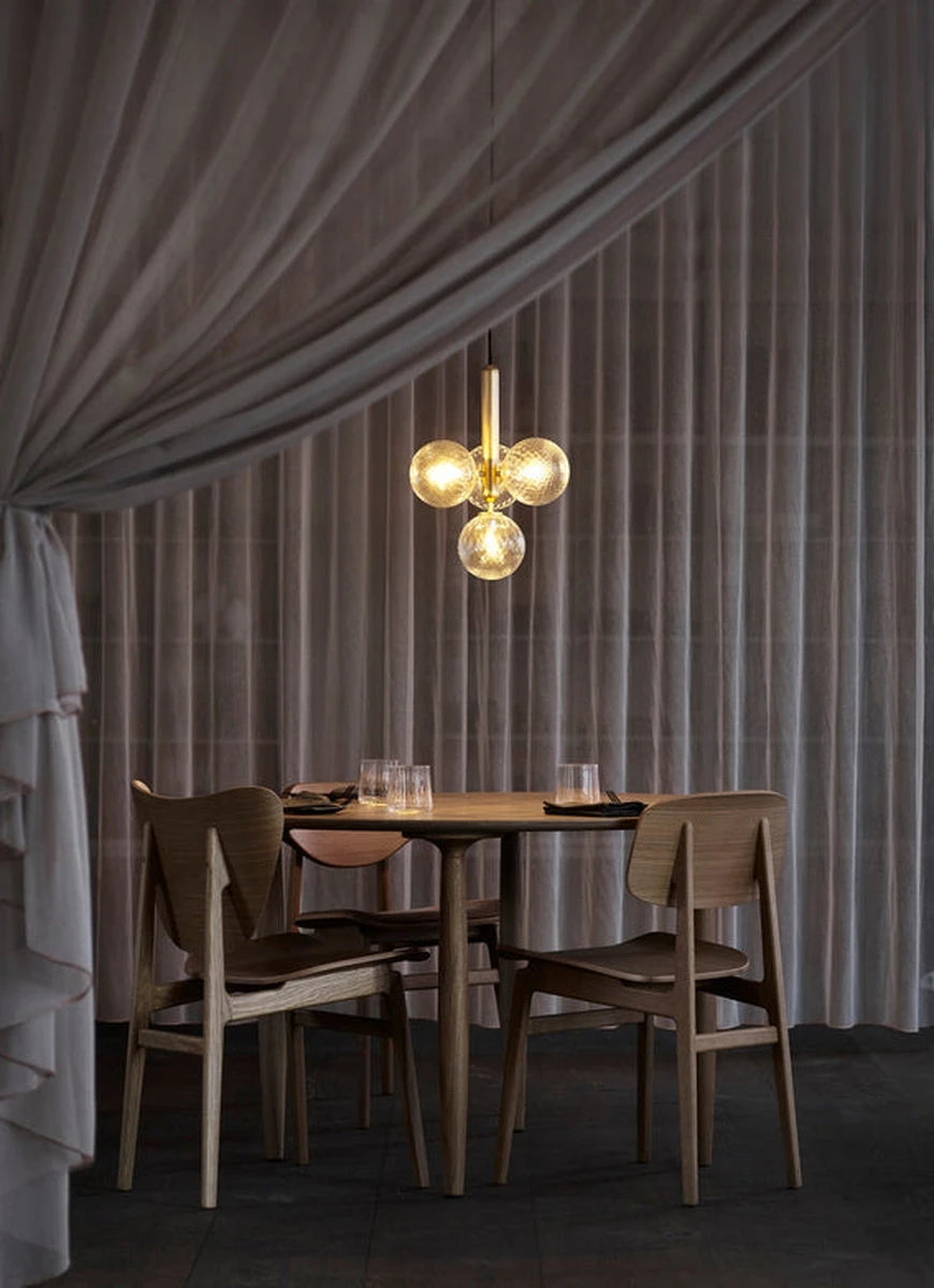 Miira 4 takpendel har et enkelt og tidløst design som omfavner den nordiske elegansen og funksjonaliteten. Det pent munnblåste glasset og det stilig bearbeidede metallet gir designet balanse og dybde. Mykt nordisk lys skinner fra glasset og sprer en unik atmosfære til rommet lampen plasseres i.