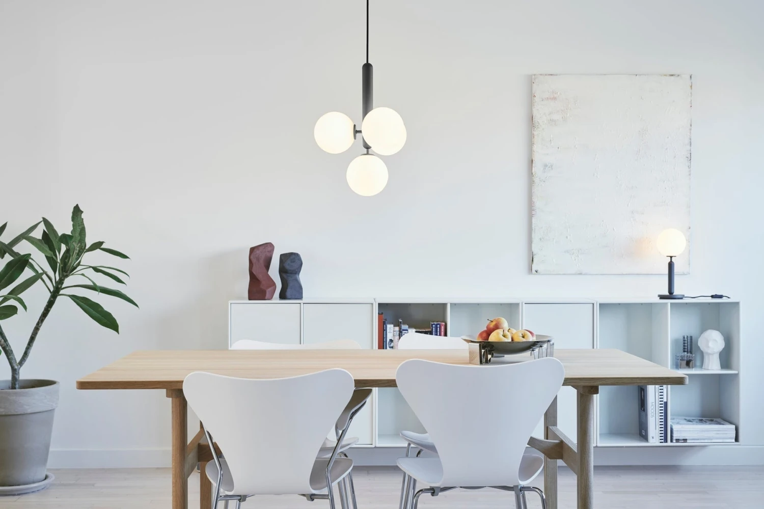Miira 4 takpendel har et enkelt og tidløst design som omfavner den nordiske elegansen og funksjonaliteten. Det pent munnblåste glasset og det stilig bearbeidede metallet gir designet balanse og dybde. Mykt nordisk lys skinner fra Opal White-glasset og sprer en unik atmosfære til rommet lampen plasseres i.