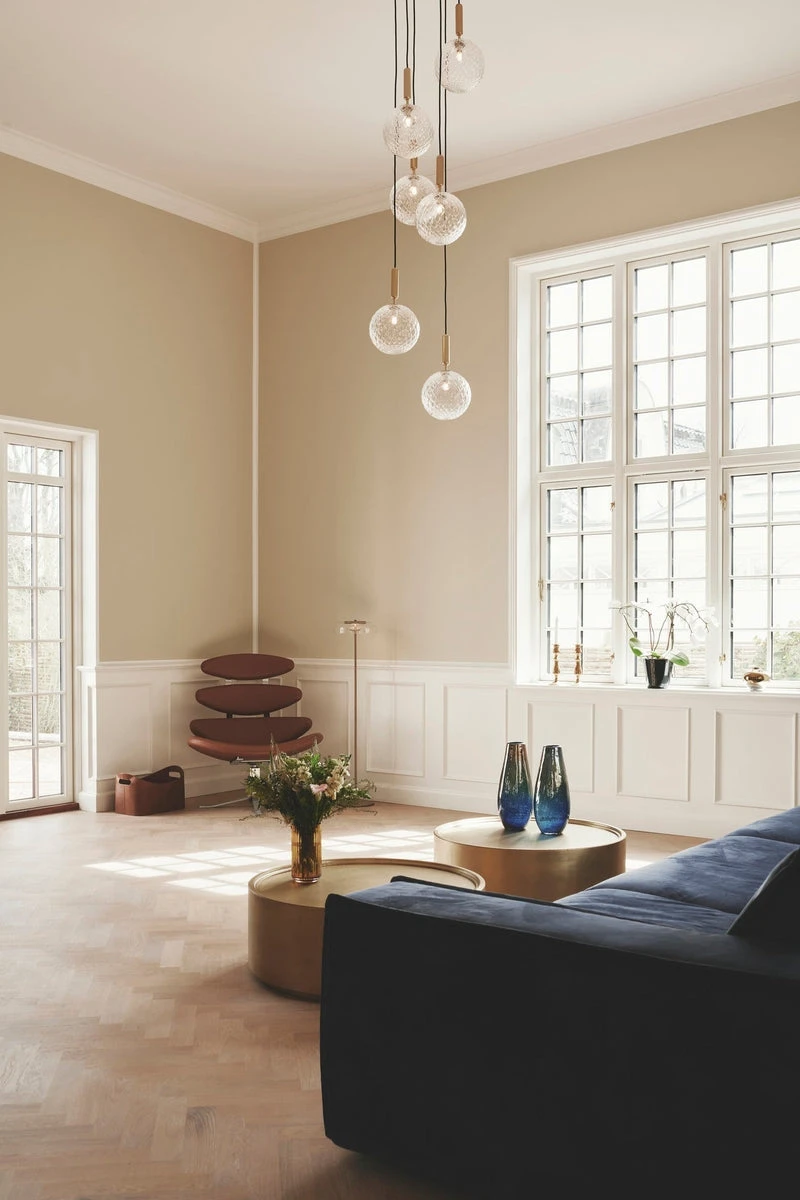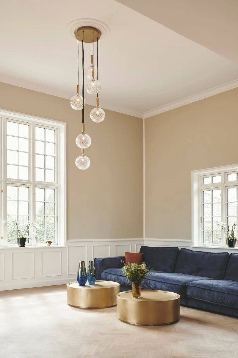 Miira 6 Large Brass takpendel har et enkelt og tidløst design som omfavner den nordiske elegansen og funksjonen. Det munnblåste glasset og stilige bearbeidede metallet gir designet balanse og dybde. Mykt nordisk lys sprer en unik atmosfære til rommet lampen befinner seg i.