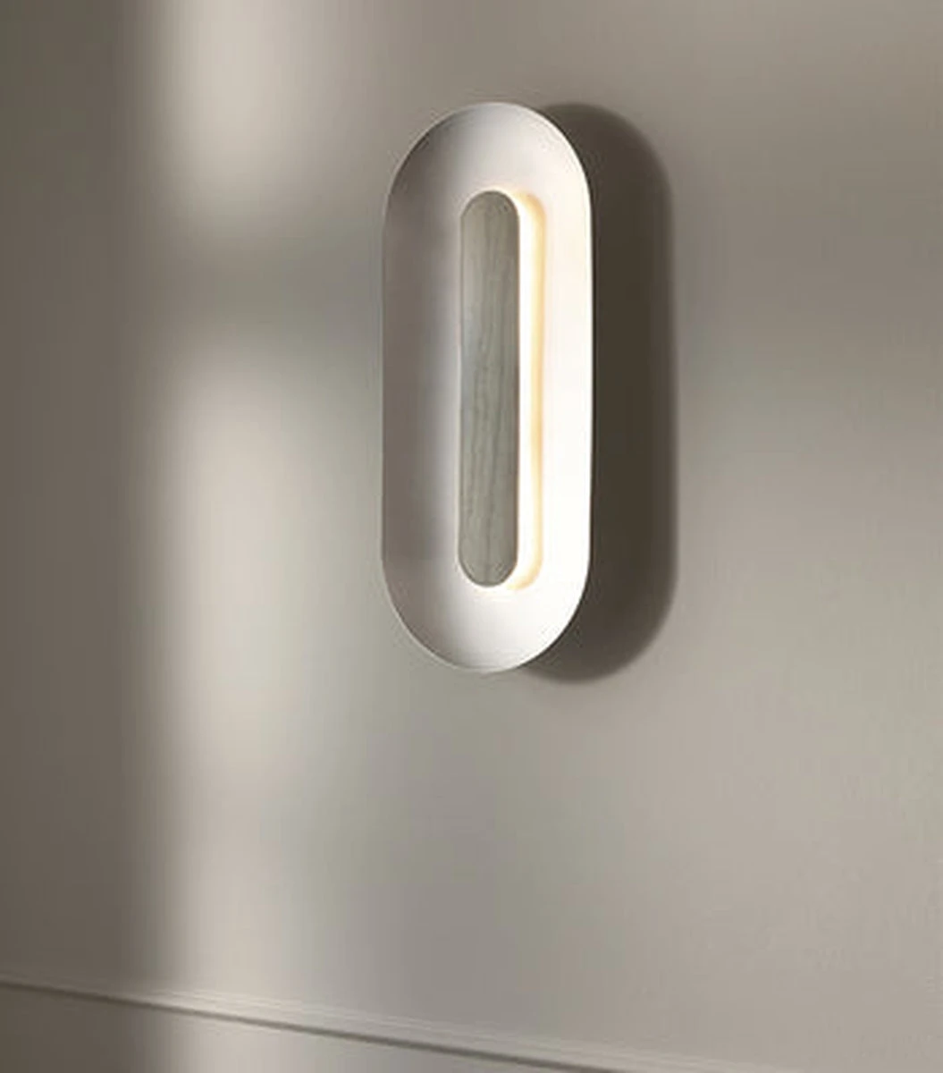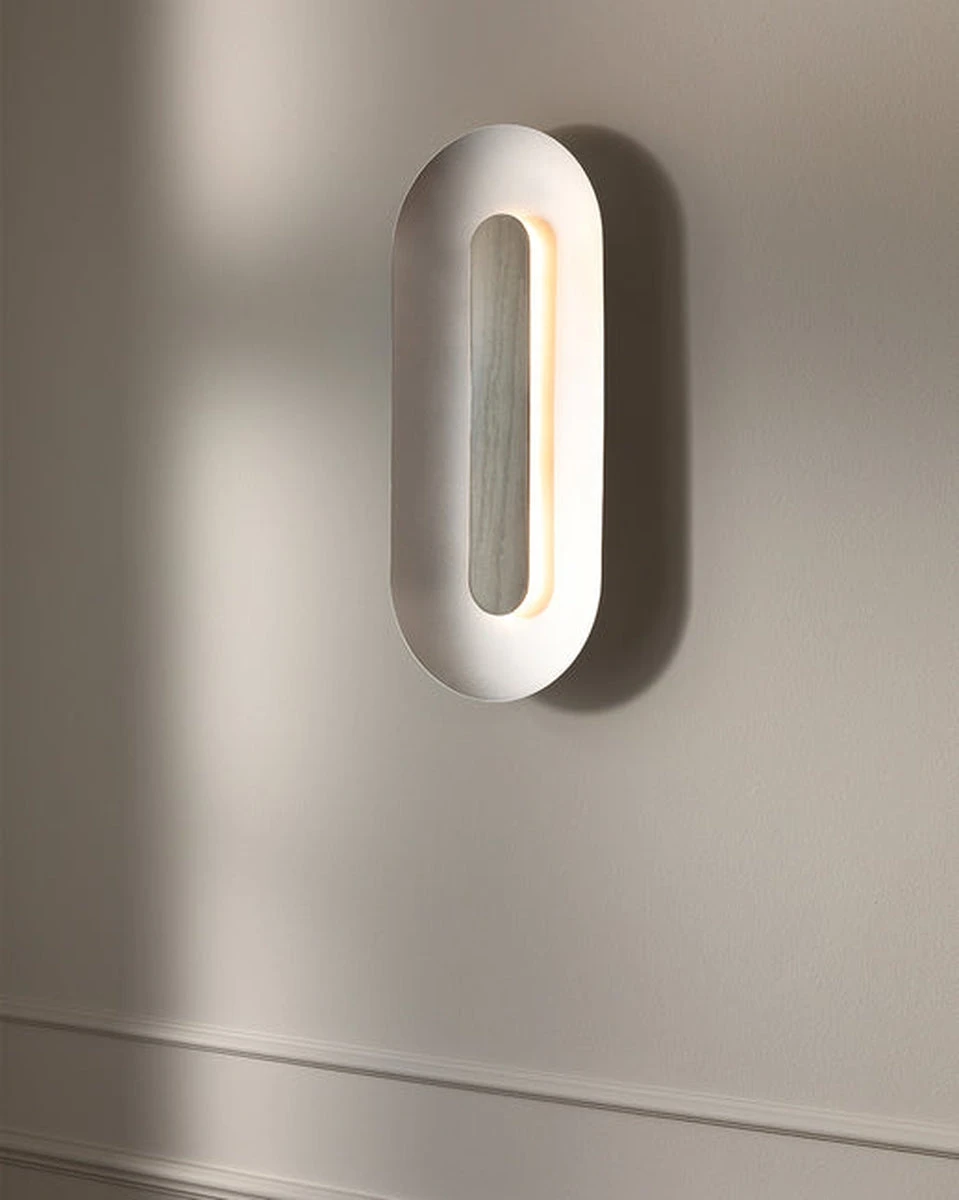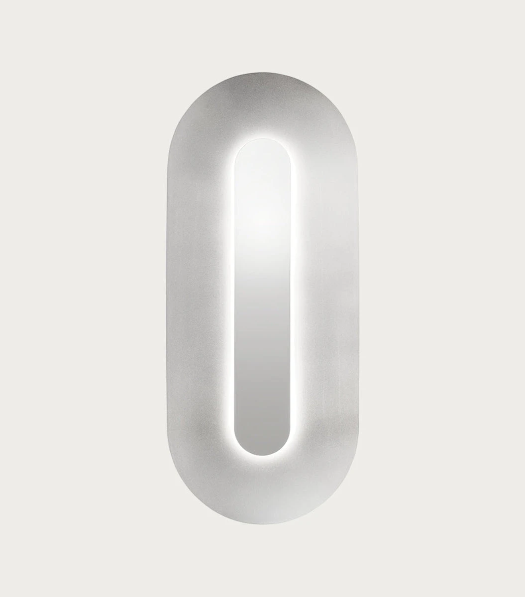 Dekorativ vegglampe med et mykt uttrykk og et behagelig, indirekte lys. Sasi Large vegglampe er konstruert med en stor rund metallramme i sateng sølv finish og en lampeskjerm i polert sølv finish. En integrert LED-modul er plassert bak den polerte skjermen og reflekterer lyset i den store metallrammen. Sasi Large vegglampe kan fungere både som et dekorativt element og som ambient belysning i stuen.