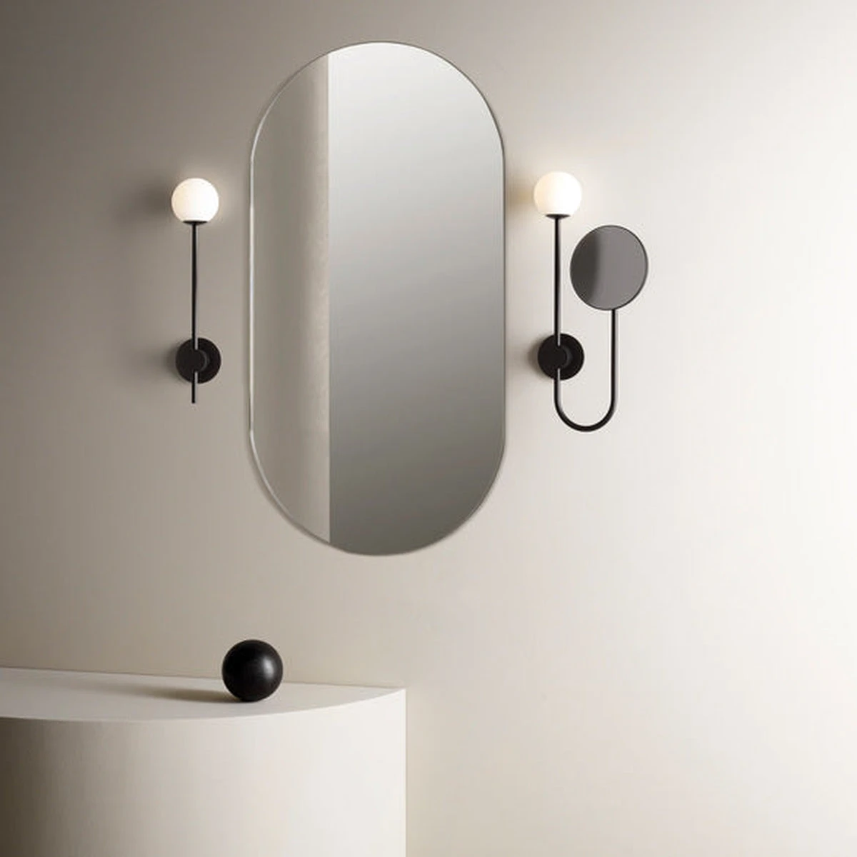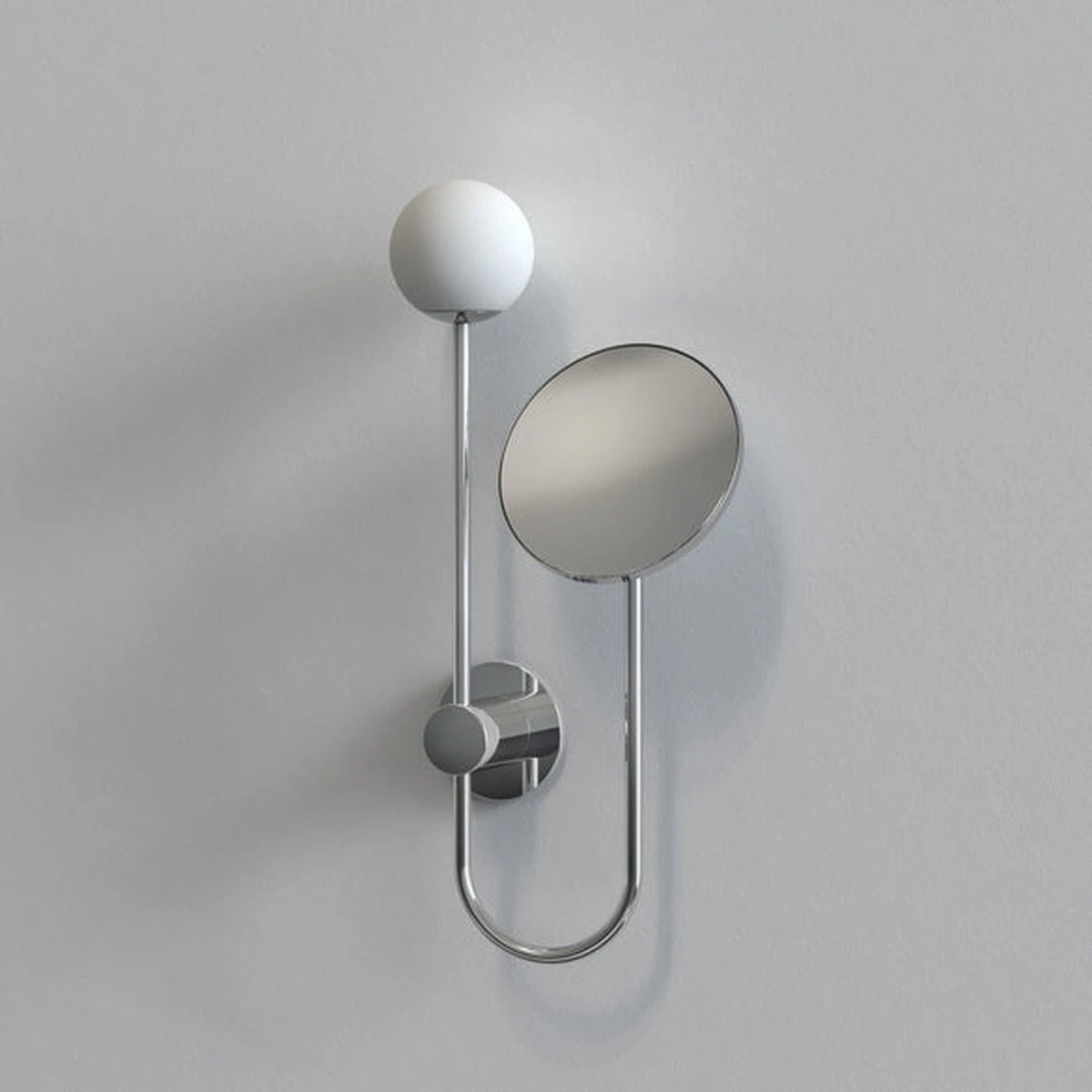 Orb er en stilren vegglampe med speil som kan benyttes på baderommet. Speilet er justerbart og har 5x zoom