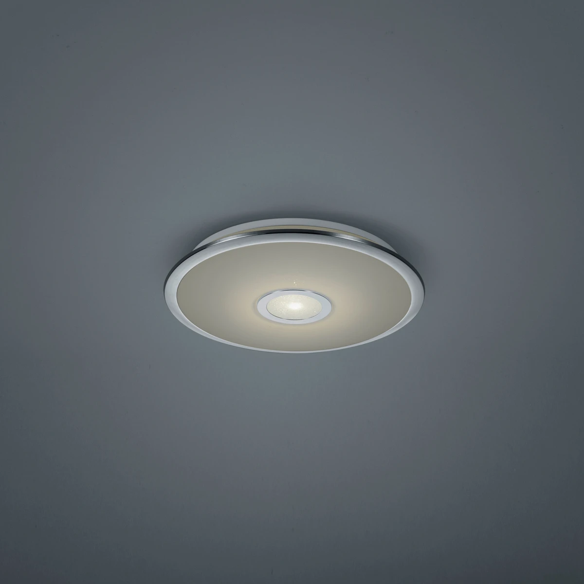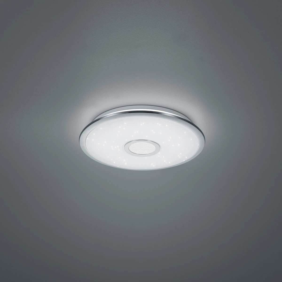 Taklampe som også kan brukes på vegg, med integrert dimmer og fjernkontroll, nattlysfunksjon, stjernelyseffekt, minnefunksjon, lysfargestyring og spesielt egnet for soverom.