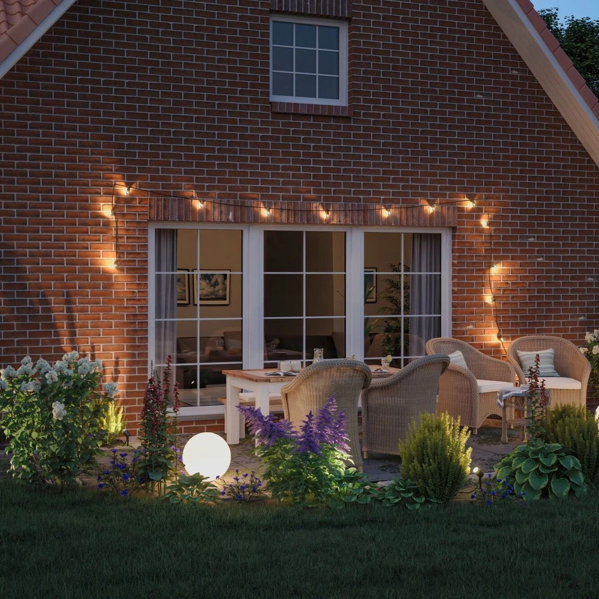 Plug & Shine lyskjede med varmt hvitt lys skaper den perfekte atmosfæren utendørs og kan fleksibelt vikles rundt rekkverk, møbler og planter. Med transformatorer, kontakter og tilleggsarmaturer fra Plug & Shine-serien kan du sette sammen en individuell belysningsinstallasjon for uterommene dine.