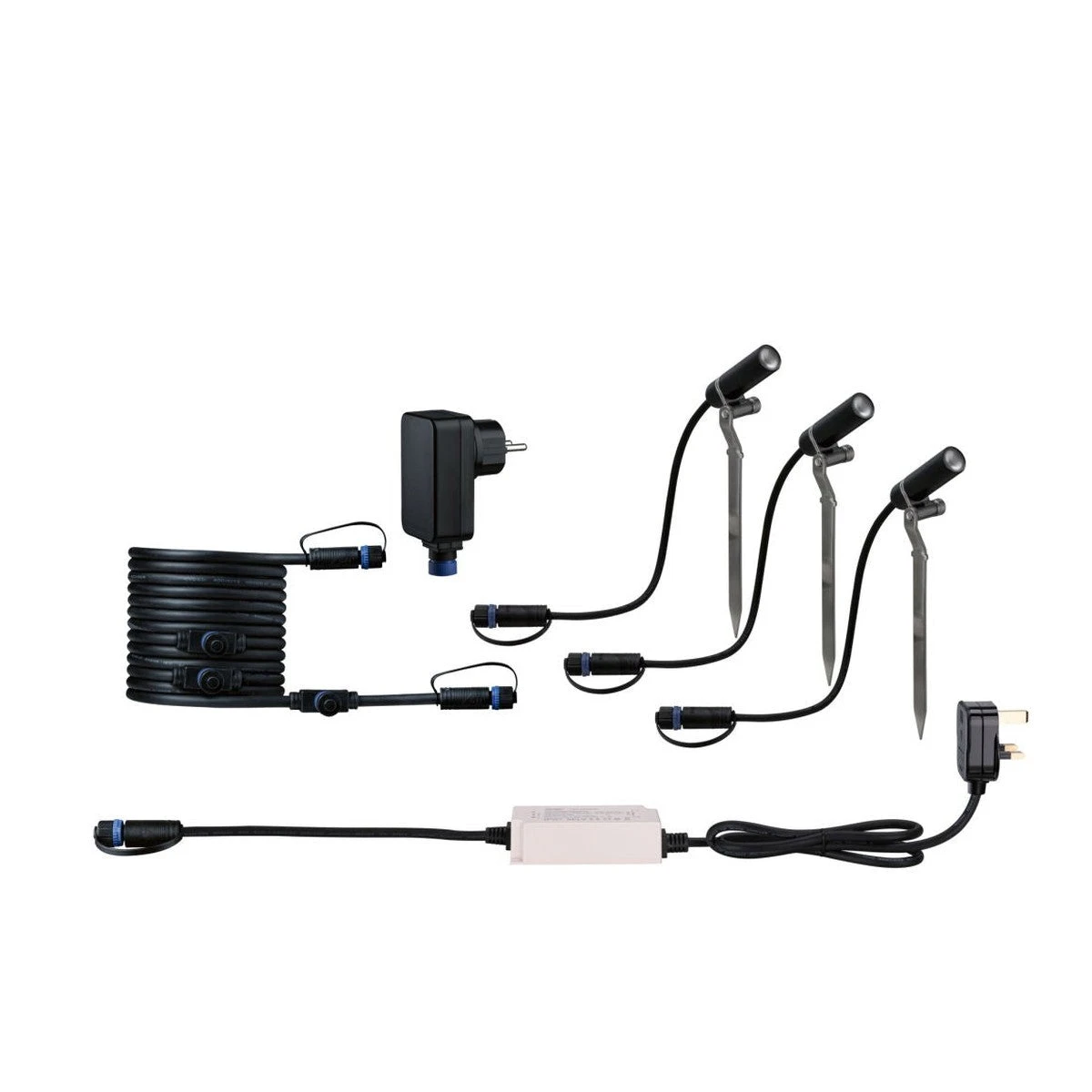 - Plug & Shine grunnsett bestående av tre armaturer, fem meter tilkoblingskabel og transformator