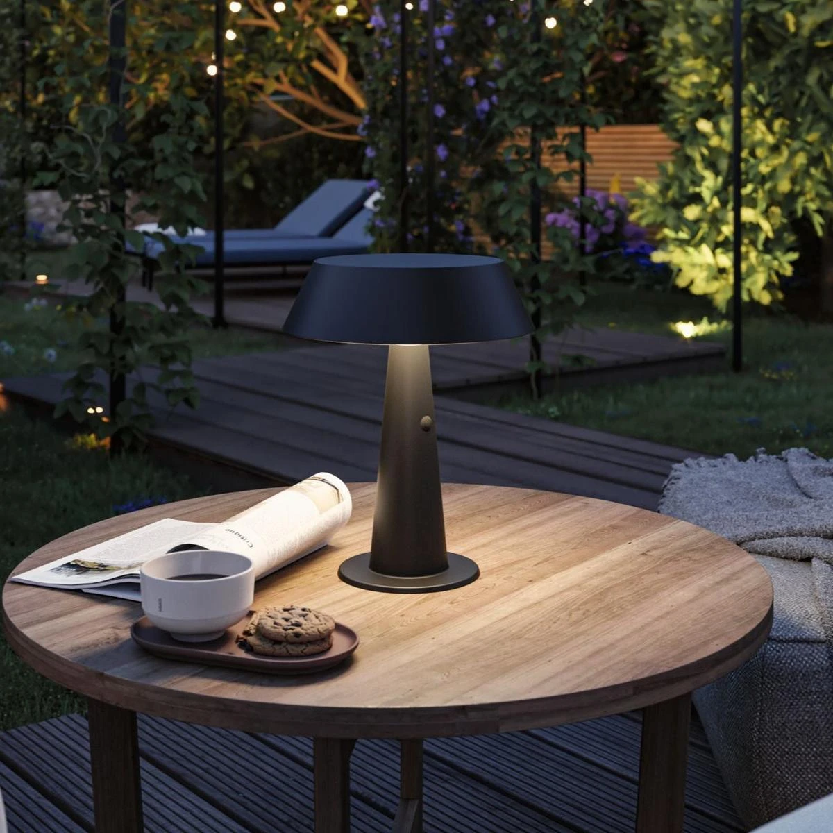 Soala mobile solcellebordsarmatur kombinerer bærekraft og fleksibilitet med et attraktivt design. Denne armaturen setter nye standarder når det kommer til miljøbevissthet, og imponerer dobbelt med sin bærekraft. Mens høykvalitetsmaterialet til armaturen består av over 60 % resirkulert plast, sikrer det integrerte solcellepanelet effektivt energiforbruk for å spare ressurser. I tillegg til det utskiftbare batteriet gir den praktiske USB-C-tilkoblingen ekstra fleksibilitet, noe som betyr at solcellebordarmaturen kan lades hvor som helst. Den antrasittfargede bordarmaturen Soala er et ekte blikkfang både innendørs og utendørs. Enten for å skape et avslappet lesehjørne i stuen eller en stemningsfull atmosfære på terrassen – med sin lyse farge på 2700K, skaper den en behagelig varmhvit lysstemning i alle rom. Armaturen kan dimmes i 3 trinn etter behov, slik at den kan tilpasses individuelle preferanser. Takket være beskyttelsesgraden IP44 er den mobile solcellebordarmaturen værbestandig og kan brukes utendørs uten problemer.