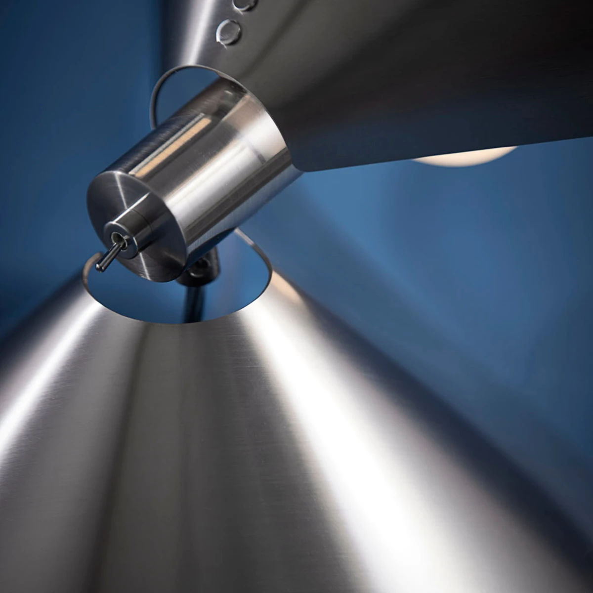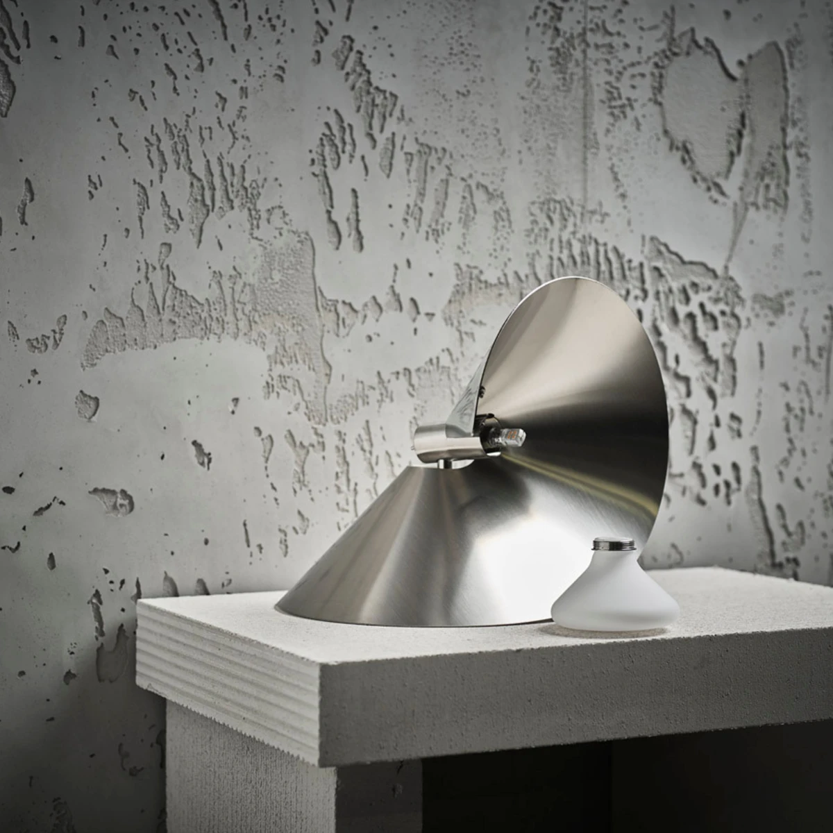 Avduking av Peel, armaturen i rustfritt stål designet av den nederlandsk-danske designeren Sissel Gram Warringa, nøye utformet for en overraskende myk, diffus belysningseffekt.