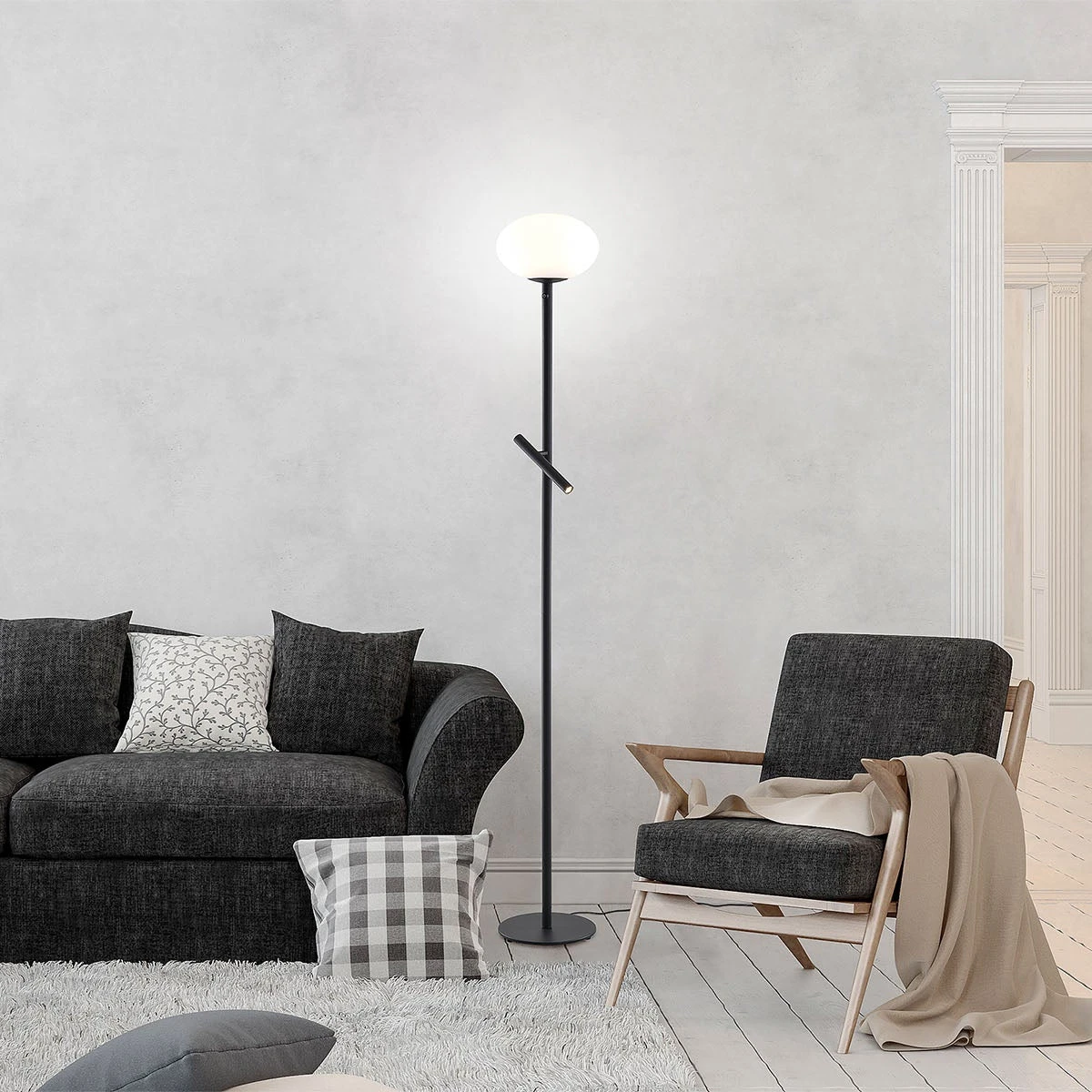 Den elegante, oppreiste formen og de effektive, faste LED-lyskildene gir en perfekt kombinasjon av leselys og stemningsbelysning. Den matte svarte finishen gjør at lampen glir sømløst inn i både moderne og klassiske interiører.