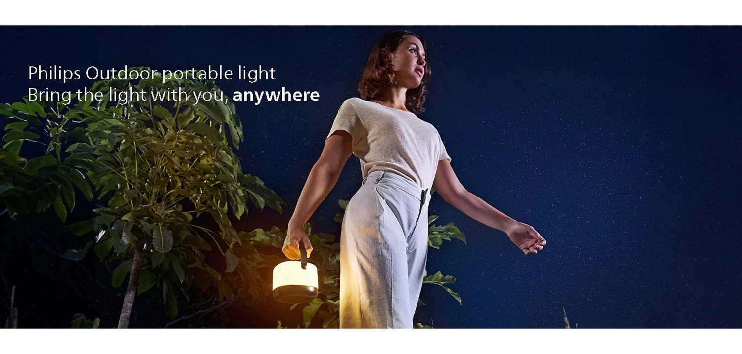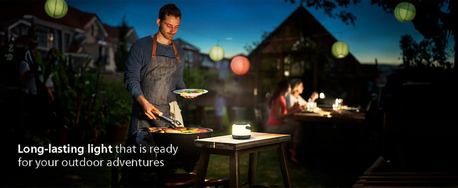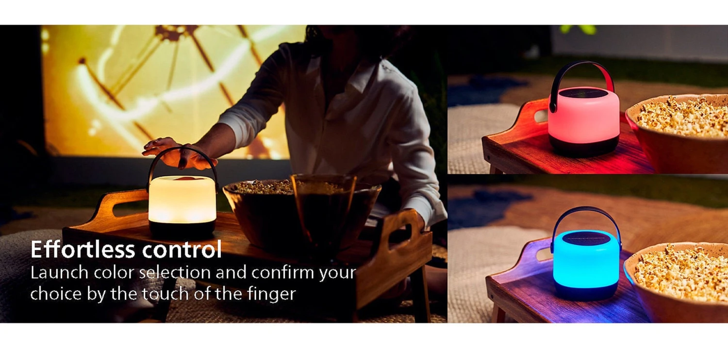 Denne bærbare solcellelampen fra Philips Alula har 3 i 1 lysinnstillinger. Ved å trykke eller trykke, kan du få to lysstyrkenivåer eller RGB-partymodus.