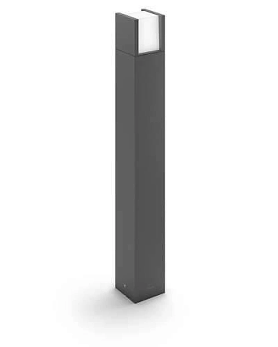 Philips Arbour LED-pullert i formstøpt, slitesterk aluminium. Lyser godt opp med varmhvit lys på 2 sider av lampen.
