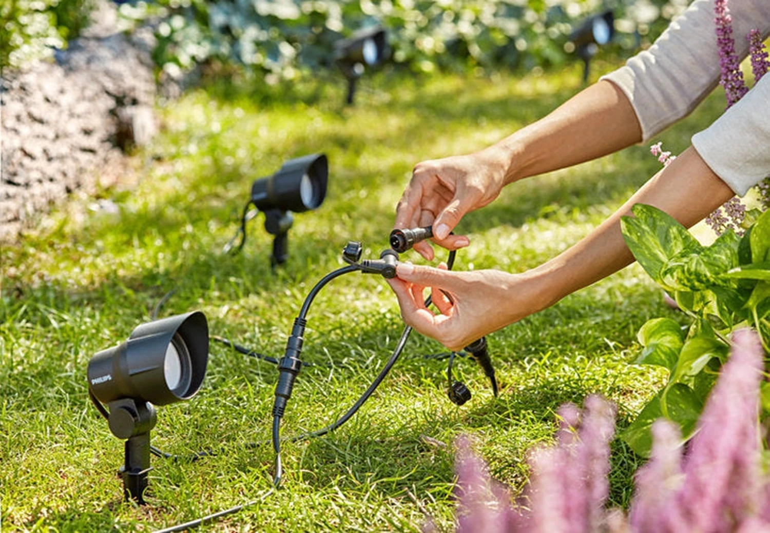 Serien Philips GardenLink med lav spenning tilbyr en rekke utendørsarmaturer som du enkelt og trygt kan installere selv. Du kan koble flere lys til én enkelt strømforsyning og koble strømforsyningen til en standard stikkontakt. Så kan du enkelt legge til ekstra lys eller flytte rundt på lysenes plassering når du vil.