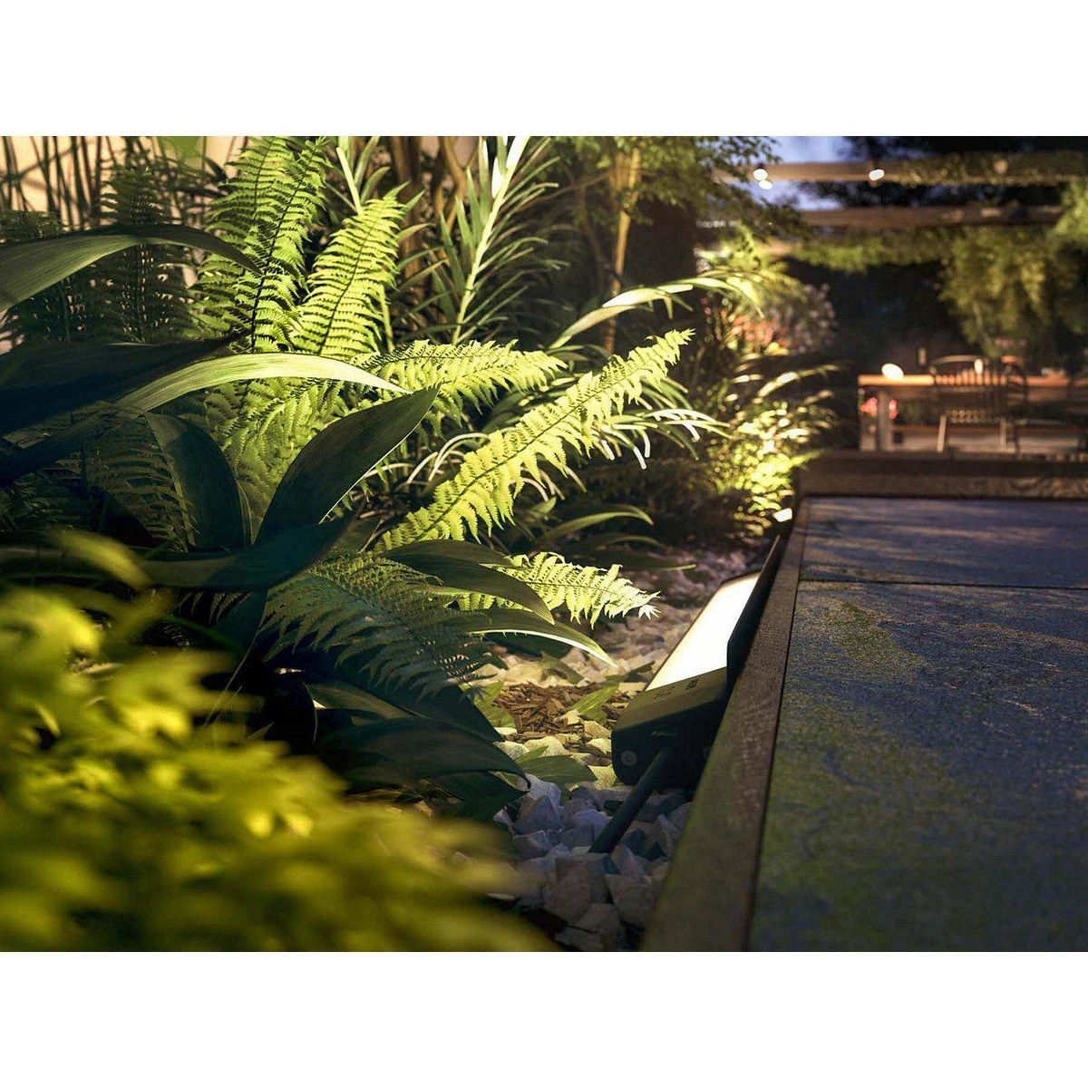Med Philips Hue utebelysning har magien ingen begrensning. Lek med 16 millioner farger og alle nyanser av hvitt lys for å skape den effekten du vil ha. Fremhev objekter, trær eller stier for å få uteplassen din til å skille seg ut. Bruk Hue-appen til å lagre favorittlysinnstillingene og hent dem frem igjen når du vil, med et enkelt fingertrykk.