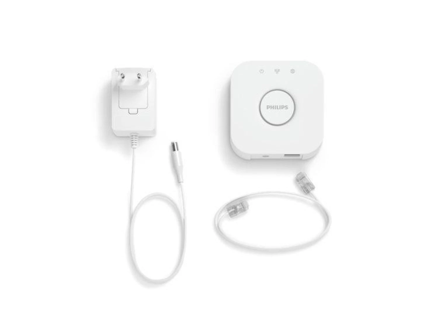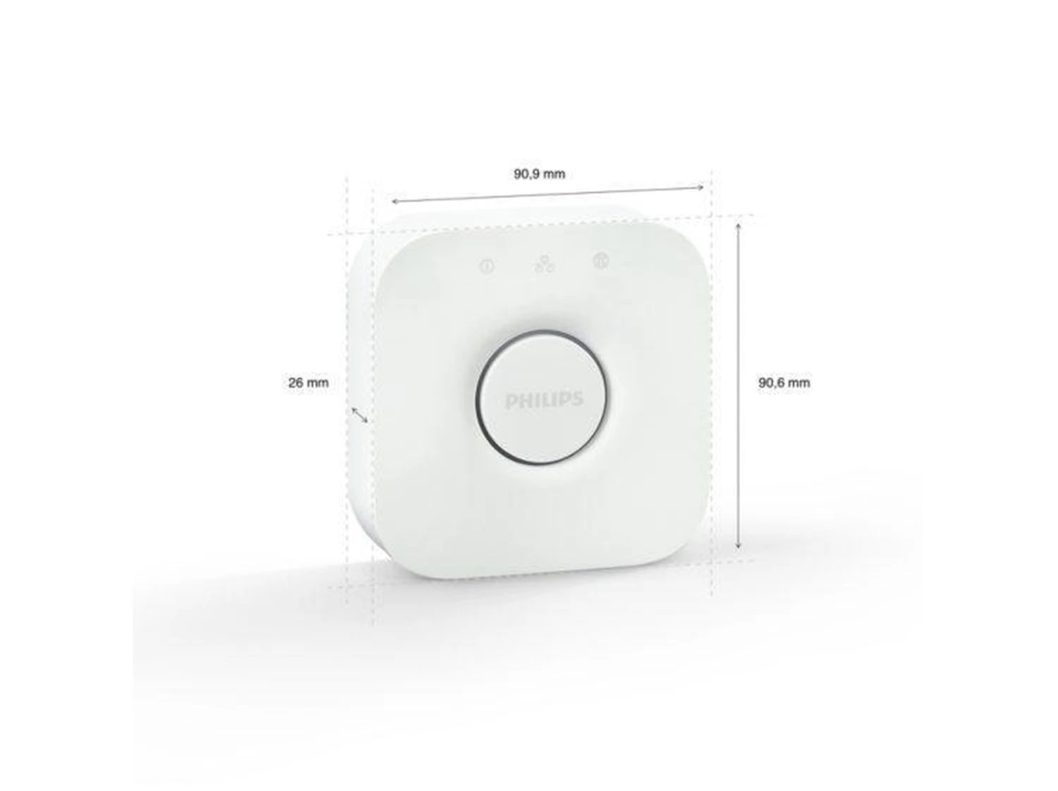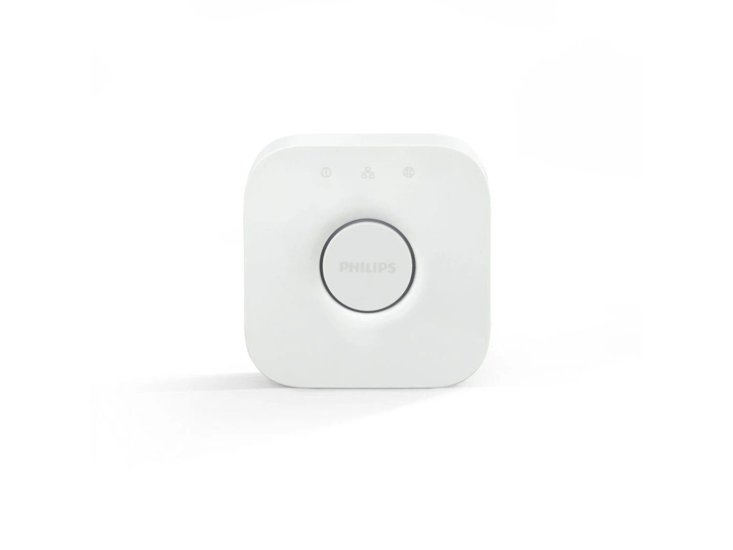 Hue Bridge, hjernen i Philips Hue intelligente belysningssystem, lar deg koble til og styre opptil 50 lys og tilbehør. Bare plugg den inn og bruk Hue-appen til å angi rutiner, tidsstyring, egendefinerte lysscener og mer.