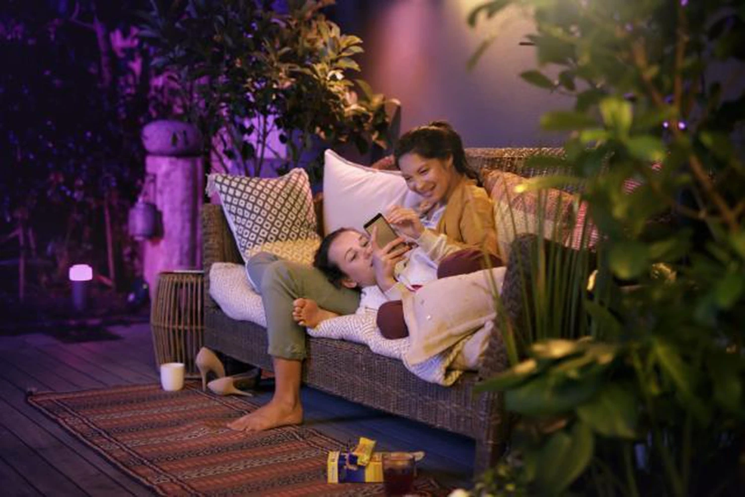 Vær kreativ med 16 millioner farger – lek deg med lyset og velg mellom 16 millioner farger for å endre utseendet og atmosfæren i uterommet på et øyeblikk. Angi scenen enkelt med ett knappetrykk. Bruk et favorittbilde og gjenopplev det spesielle øyeblikket med livlig lys. Lagre favorittlysinnstillingene dine og hent dem frem med et tastetrykk.