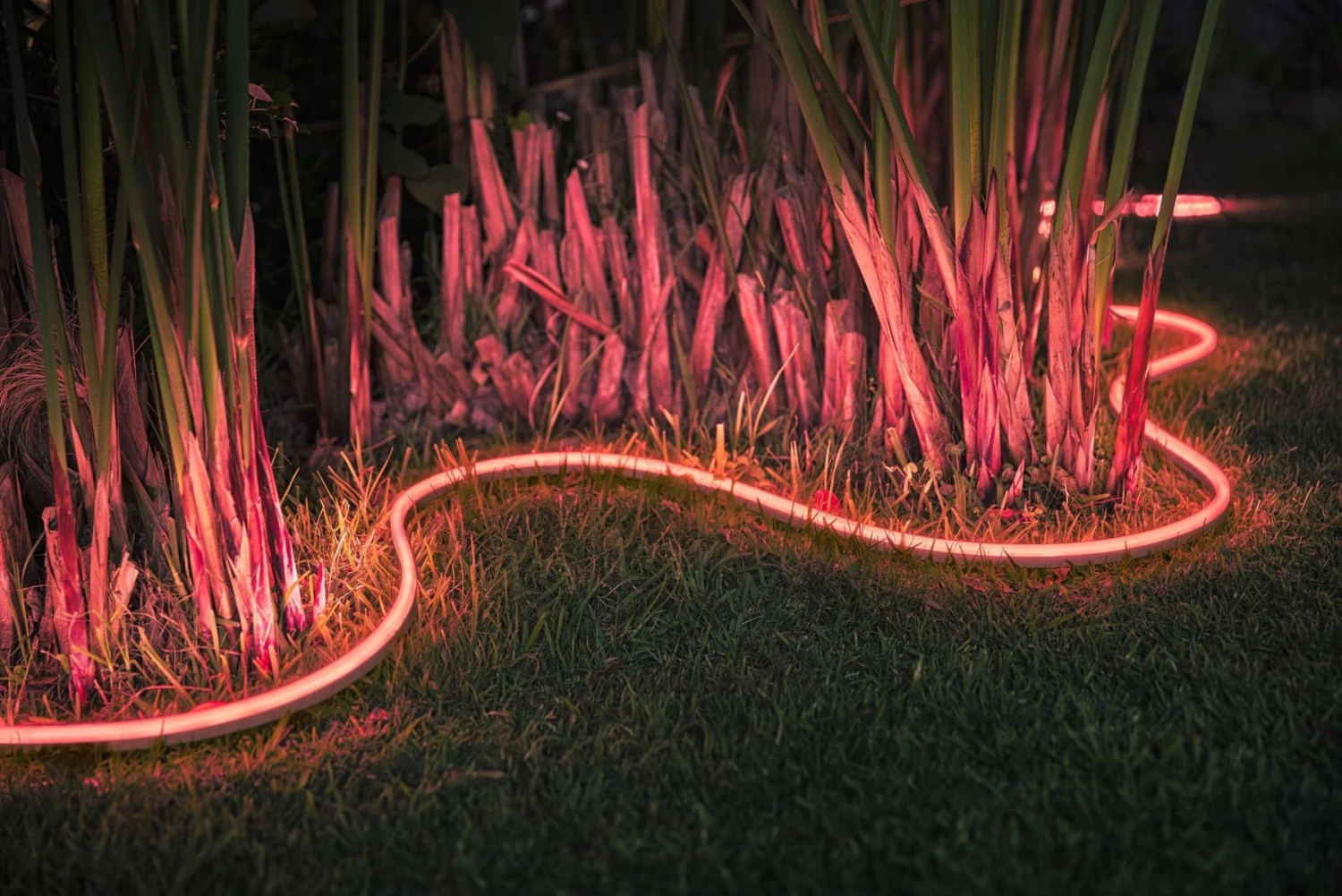 Den helt fleksible, utendørs lysstripen kan formes, bøyes og manipuleres for å skinne stripens lys slik du vil. Skap en svingete bane utenfor hjemmet eller la lyset gå opp en vegg eller kolonne. Med de medfølgende klipsene og skruene kan du installere det hvor som helst.