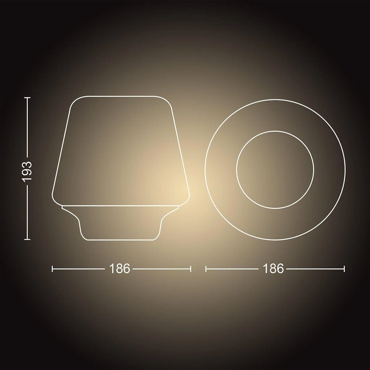 Philips Hue White ambiance Wellness bordlampens varmt til kjølig lys lar deg lese, slappe av, konsentrere deg og få energi i det perfekte lyset. Få øyeblikkelig kontroll med den medfølgende Hue-dimmeren switch eller Bluetooth eller legg til en Hue Bridge for å låse opp alle smartbelysningsfunksjonene