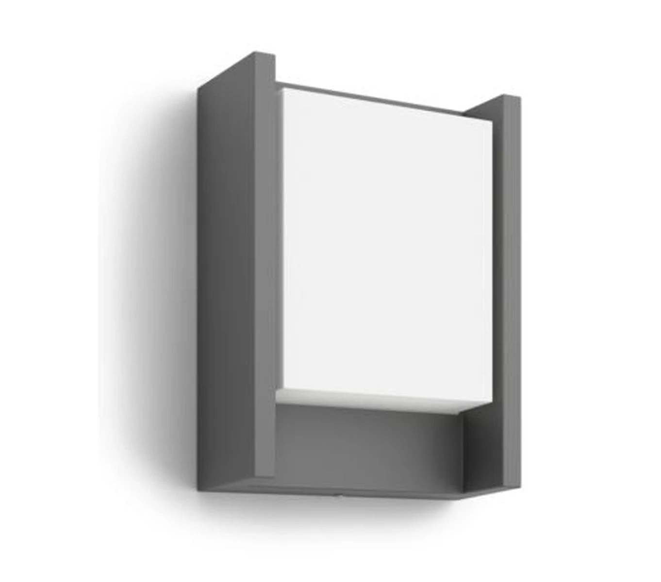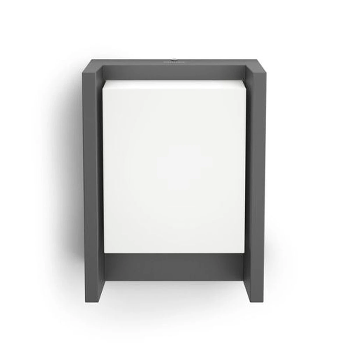 Philips Arbour LED-utendørsvegglampen rammer inn lyskilden og er formstøpt i slitesterk aluminium i antrasittgrått. Lampen lyser opp utendørsområdet med rikelig varmhvit lys