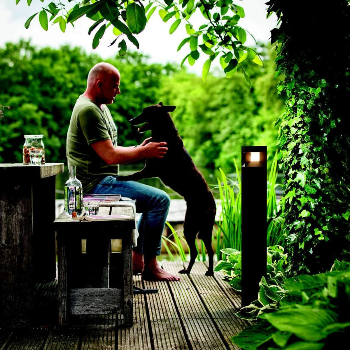 Er en del av en serie som også inneholder vegglampe og pullerter i forskjellige høyder.