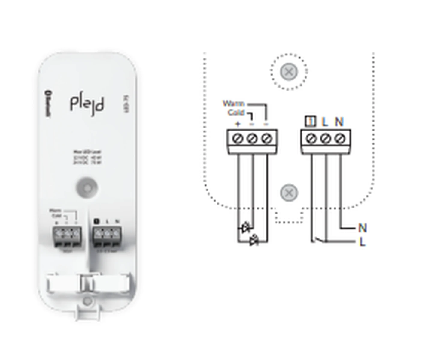 LED-driver 75 W for bruk til 12/24 V DC tunable white eller enfargede LED-striper for inntil 75 W belastning. LED-75 har en kontrollinngang, i tillegg så kan den styres trådløst via app eller andre produkter fra Plejd. Den kan også styres automatisk med innebygde tidsfunksjoner som astrour og ukesur.