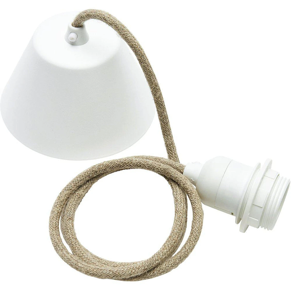 Takoppheng i tekstil som er 2,1 meter langt, har E27 ringbrakett og rekkeklemme.