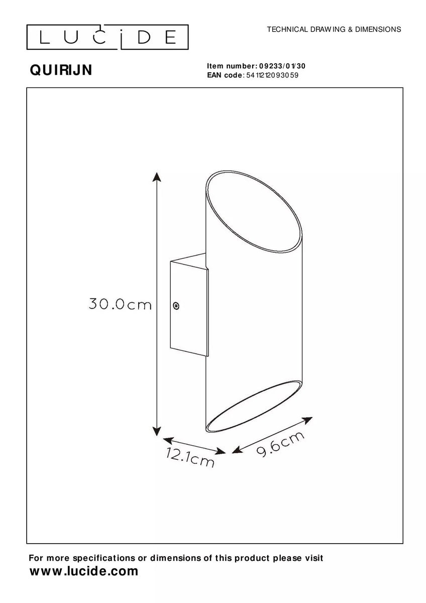 Quirijn er en moderne vegglampe, som finnes i 2 ulike farger svart eller hvit med matt gulfarget innside.