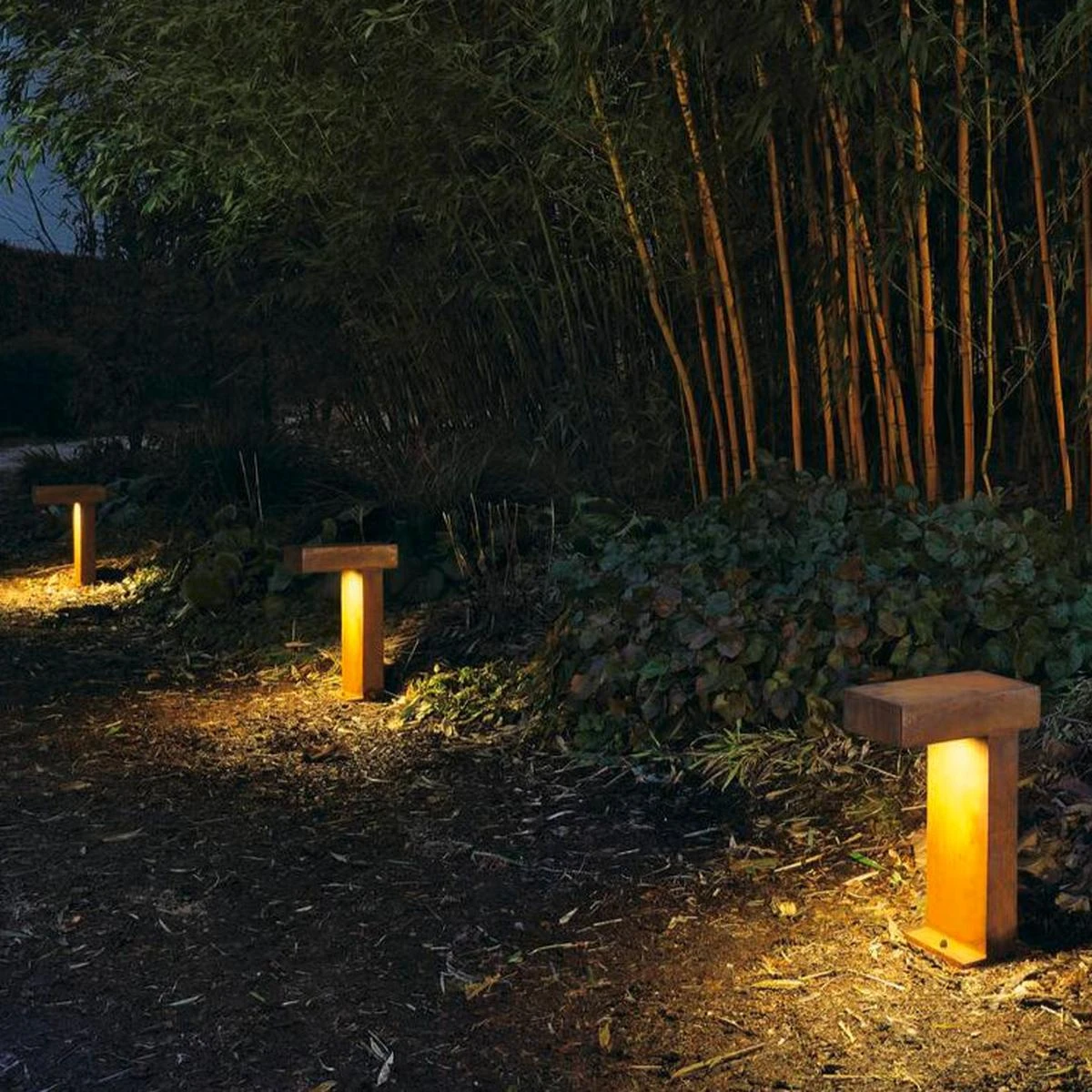 Pullerter i RUSTY® PATHLIGHT-serien avgir direkte lys og overbeviser med sin uvanlige rust-look. Bruken av FeCSi-stål gjør at det påvirkning fra vær og vind fører til at det dannes et kontrollert lag med rust på overflaten. Dette laget beskytter den egentlige substansen mot videre korrosjon. Dette gjør armaturene unike og helt spesiell i enhver installasjon. Med kapslingsklasse IP44 er den egnet til utendørs bruk. Et jordspyd samt en koblingsboks for sikker elektrisk tilkobling i den firkantede armaturfoten finnes som ekstrautstyr. Alle variantene som er i handel, kobles til 230 V nettspenning.