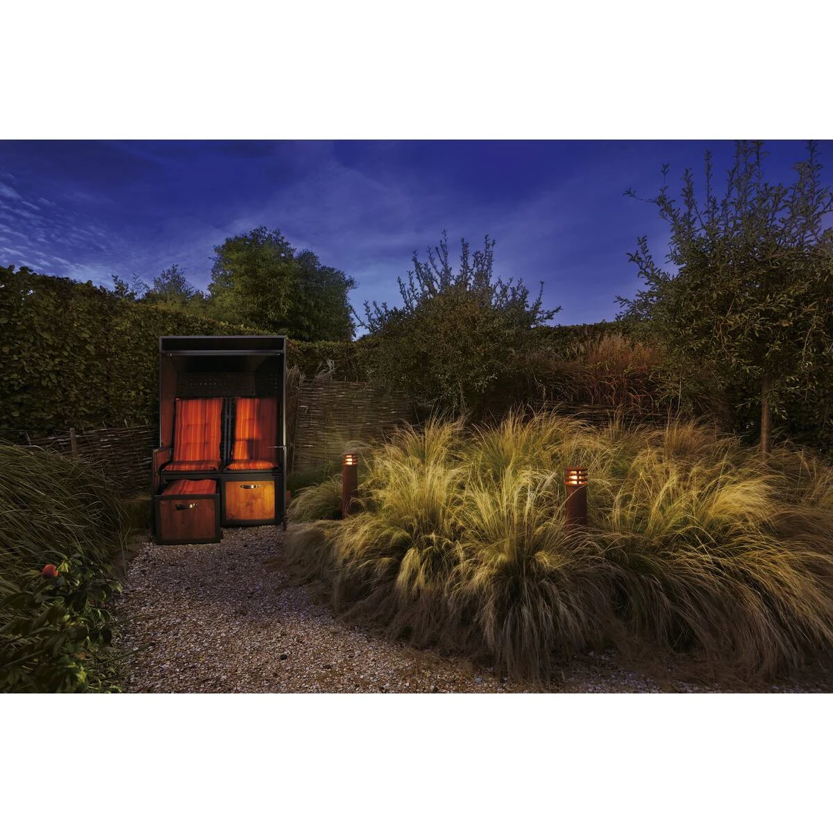 Pullerter i RUSTY®-serien avgir direkte lys og overbeviser med sin uvanlige rust-look. Bruken av FeCSi-stål gjør at det påvirkning fra vær og vind fører til at det dannes et kontrollert lag med rust på overflaten. Dette laget beskytter den egentlige substansen mot videre korrosjon. Dette gjør armaturene unike og helt spesiell i enhver installasjon. Med kapslingsklasse IP55 er de egnet til utendørs bruk. Alternativt kan du få et jordspyd samt en koblingsboks for sikker elektrisk tilkobling i armaturfoten