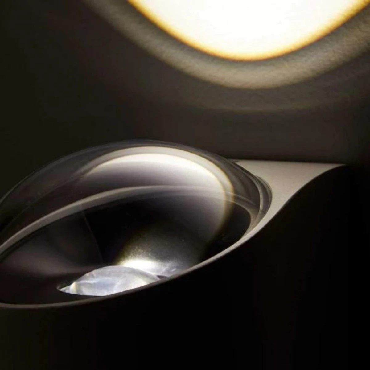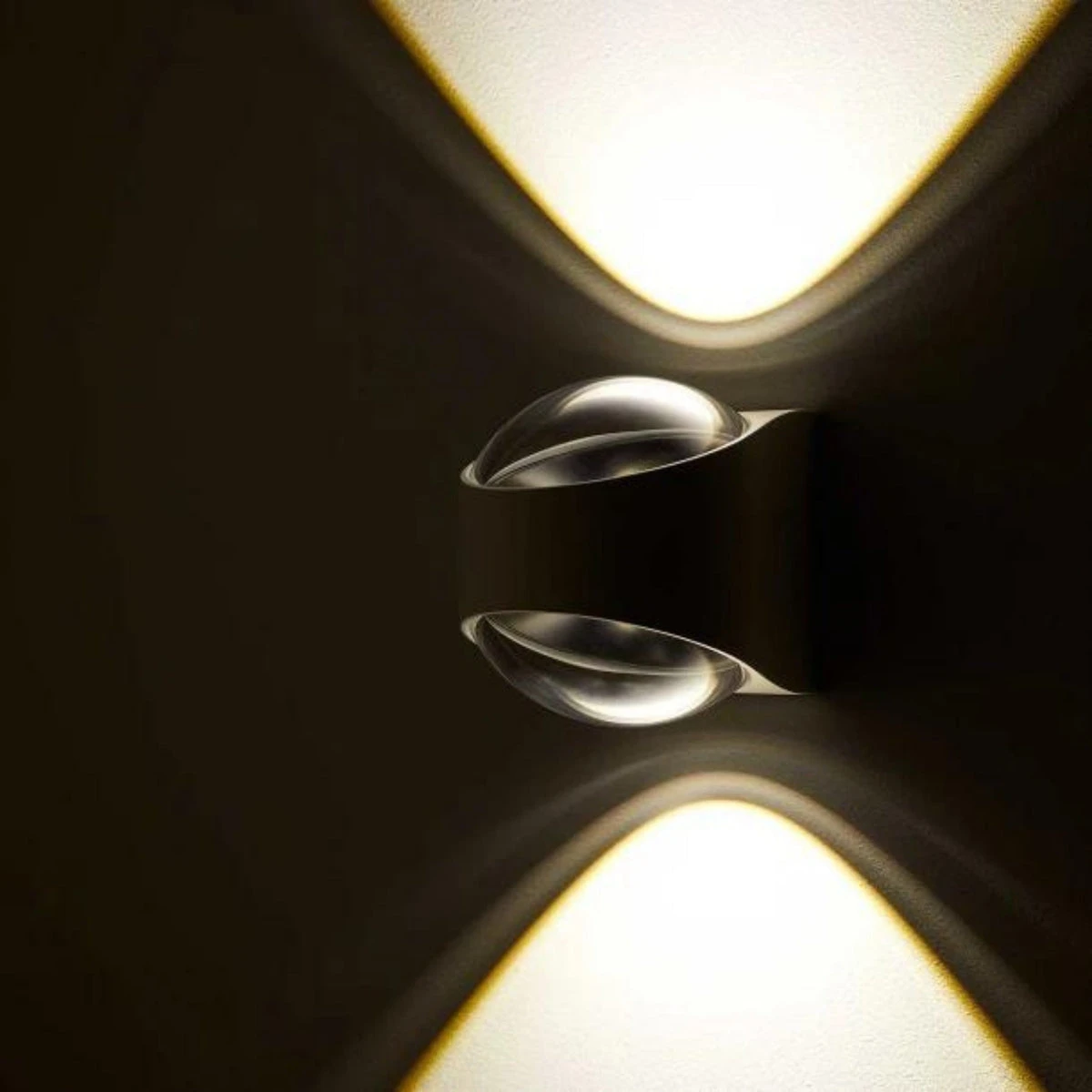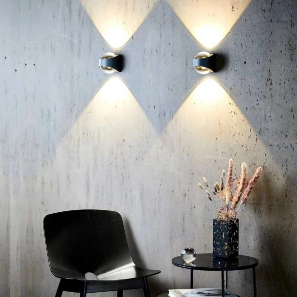 Saga vegglampe i svart har en vakker innovativ form som en innsatt perle inspirert av smykkedesign. Den avgir et fantastisk lys oppover og nedover, gir et fint lysspill på veggen og kan gi god belysning inne i stuen, kjøkkenet og på badet, så vel som ute på fasaden, da den har en IP65-kapslingsgrad som også gjør den ideell for utendørs bruk. Lampen har en optisk linse og glanslinse som sørger for at LED-lyset er klart og lysspredningen er 80 °.